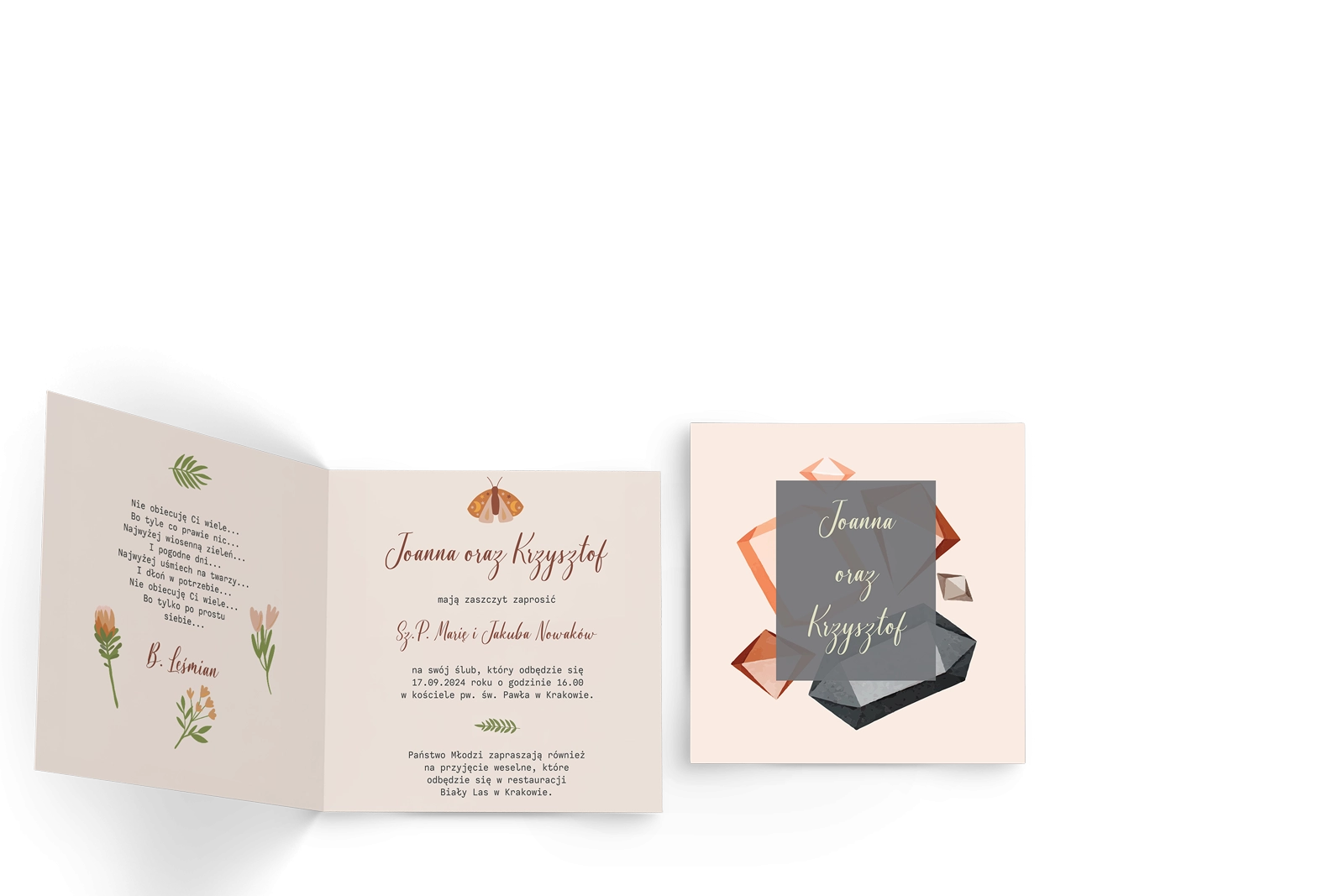 Zaproszenia ślubne Butterflies - Składane Kwadrat Motyw 3