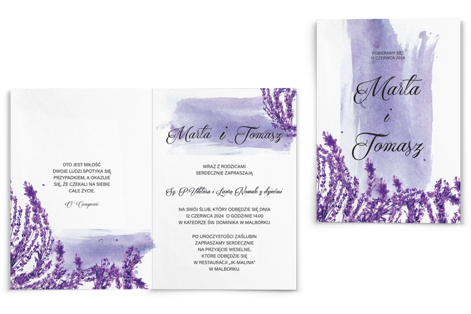 Wszystkie treści zaproszenia oraz dodatkowych wkładek są dowolnie personalizowane. Możesz zmienić każdą treść na swoim zaproszeniu. Podczas wypełniania Formularza Personalizacji opisz nam jak chcesz, aby wyglądało Twoje zaproszenie. Grafik przygotuje projekt skrojony specjalnie dla Ciebie.