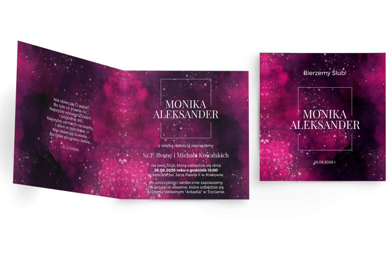 Nie znalazłeś/aś dodatków do tego zaproszenia? Nie martw się! Napisz do nas, a specjalnie dla Ciebie zaprojektujemy dodatek którego potrzebujesz i dodamy go bezpłatnie na stronę do zakupu.