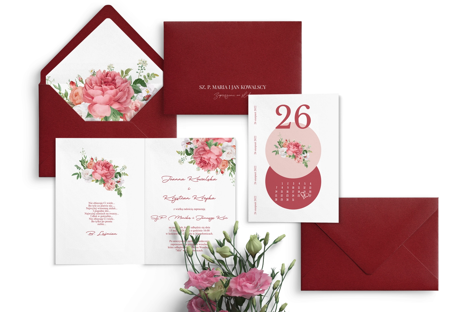 Zaproszenia ślubne Day kalendarz w jasno bordowym wydaniu