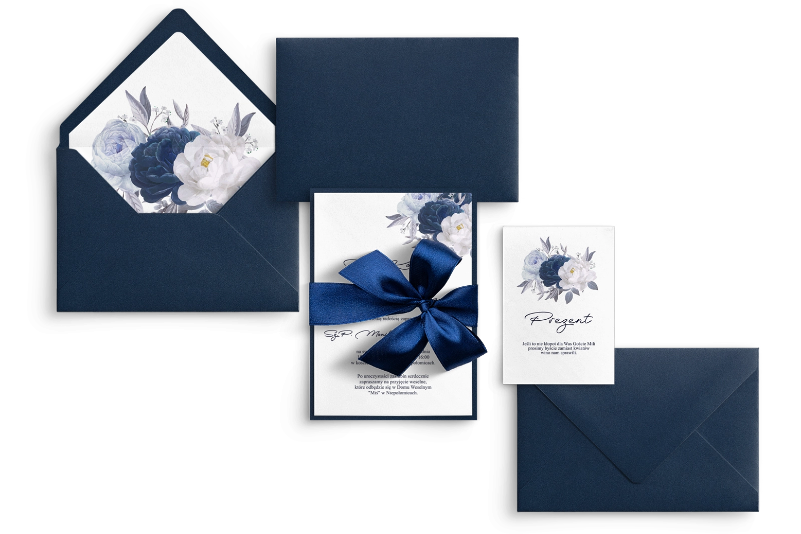 Zaproszenia ślubne Day w granatowym kolorze z piękną wstążką satynową