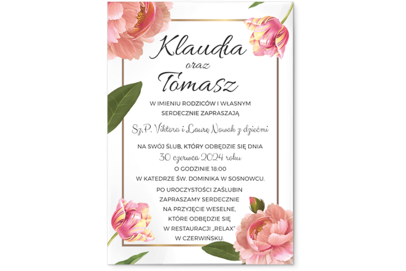 | Rozmiar zaproszenia | 148x105 mm (+- 2mm) |