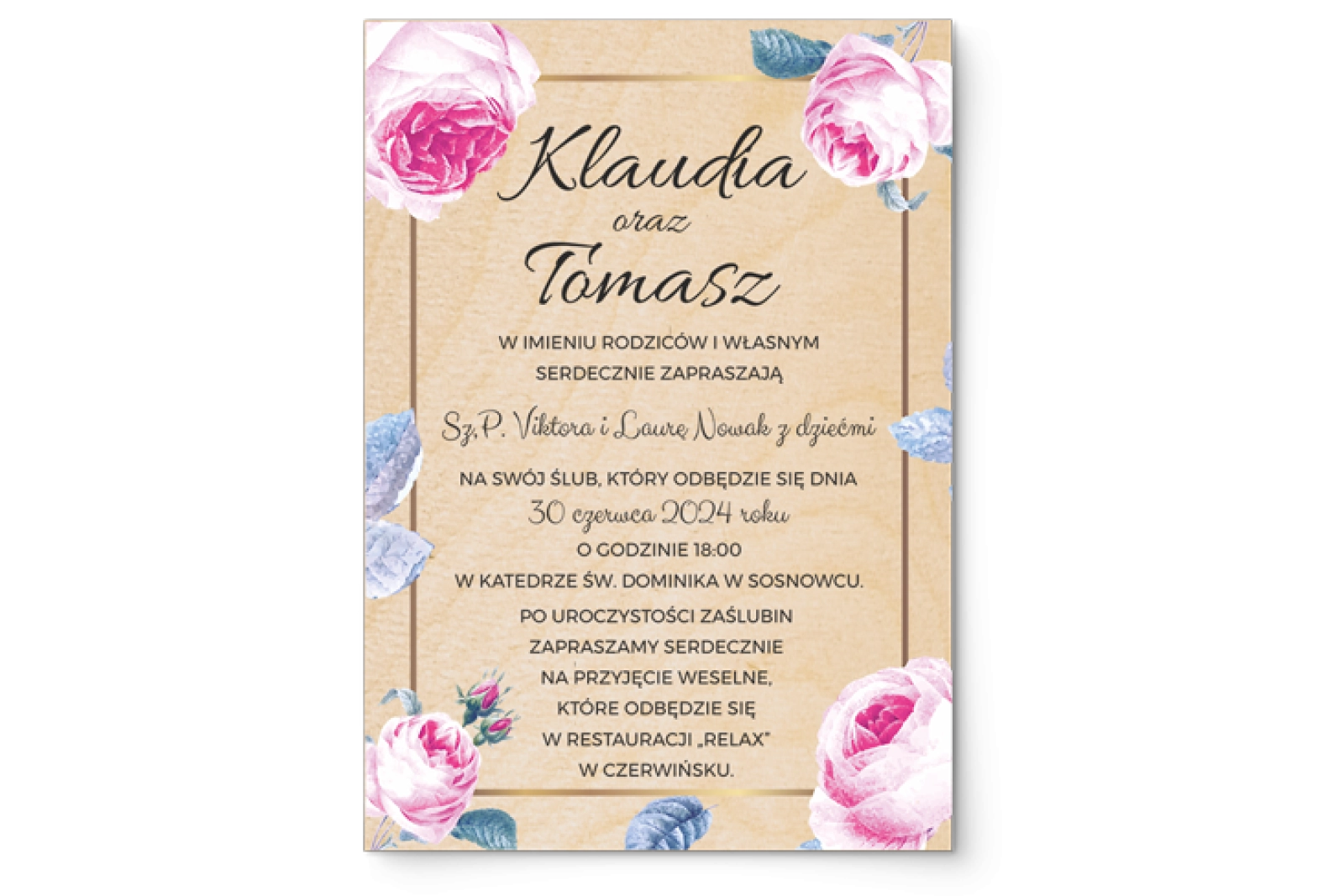 Zaproszenia ślubne Dream - Drewniane Motyw 3