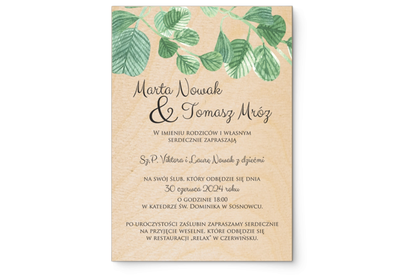 Zaproszenia ślubne Liście - Drewniane Motyw 6