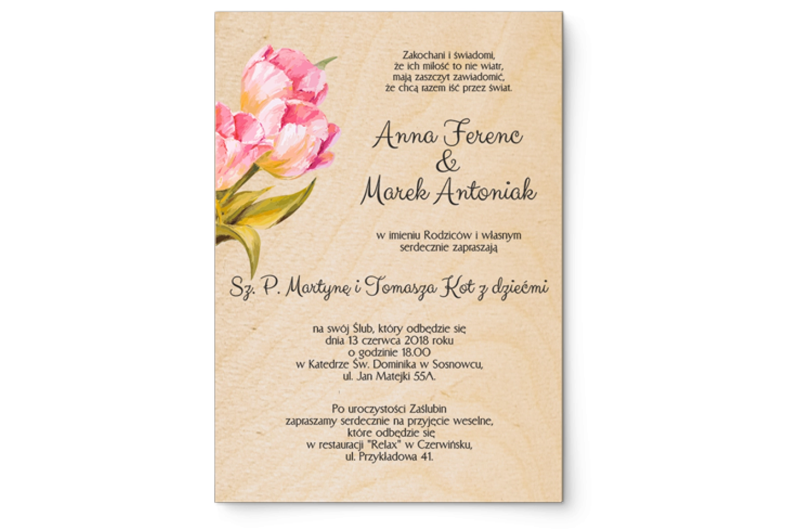 Zaproszenia ślubne Sweet Love- Drewniane Motyw 4