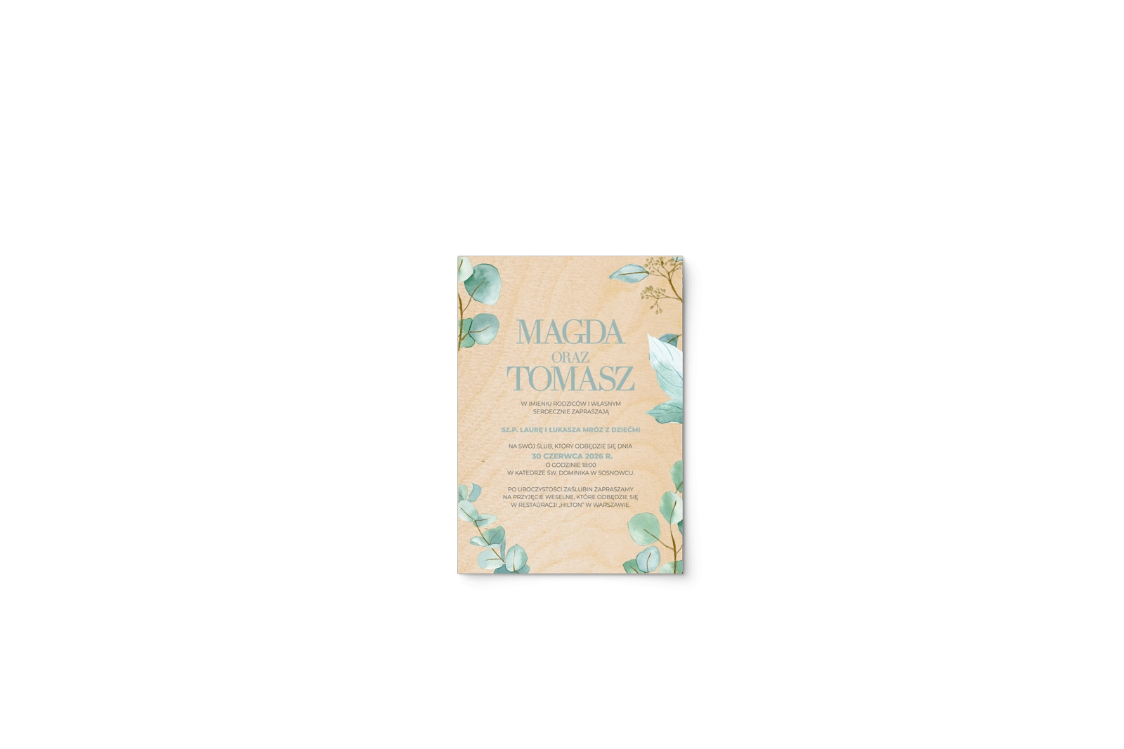 Zaproszenia ślubne Eukaliptus - Drewniane Motyw 1