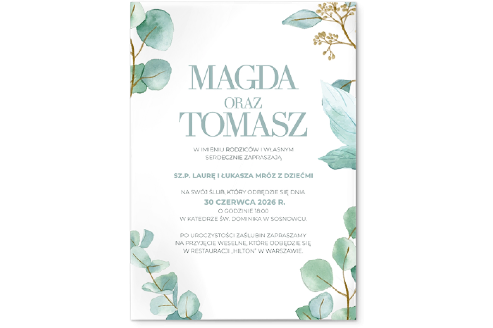 | Rozmiar zaproszenia | 148x105 mm (+- 2mm) |