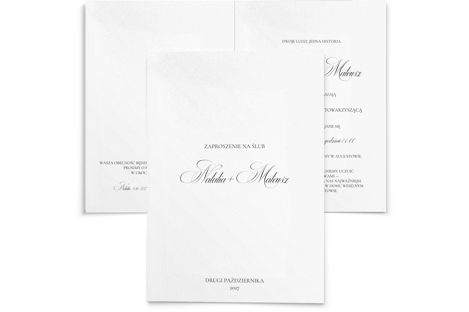 Na tej karcie produktu kupujesz Zaproszenia Ślubne Składane w konfiguracji określonej w specyfikacji. Nasze zaproszenia ślubne są drukowane na wybranym przez Ciebie papierze przy użyciu wysokiej jakości drukarki produkcyjnej, która zapewnia mocne, nasycone kolory oraz czytelny wyrazisty tekst.