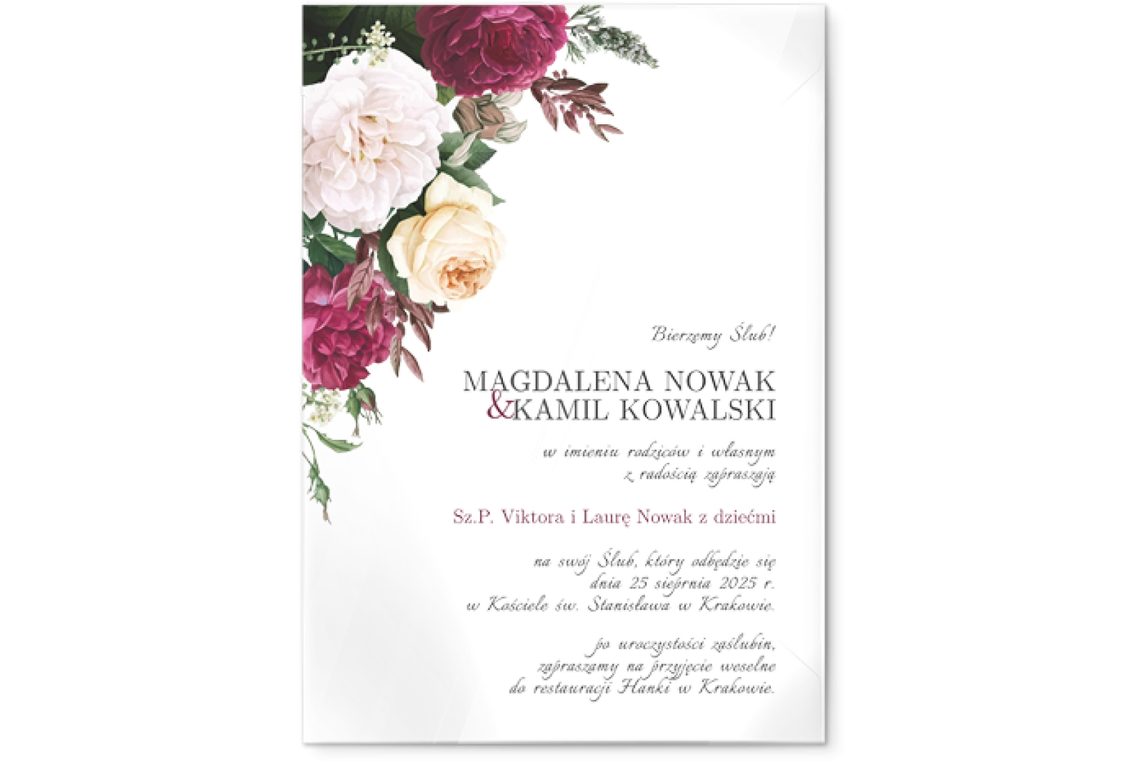 | Rozmiar zaproszenia | 148x105 mm (+- 2mm) |