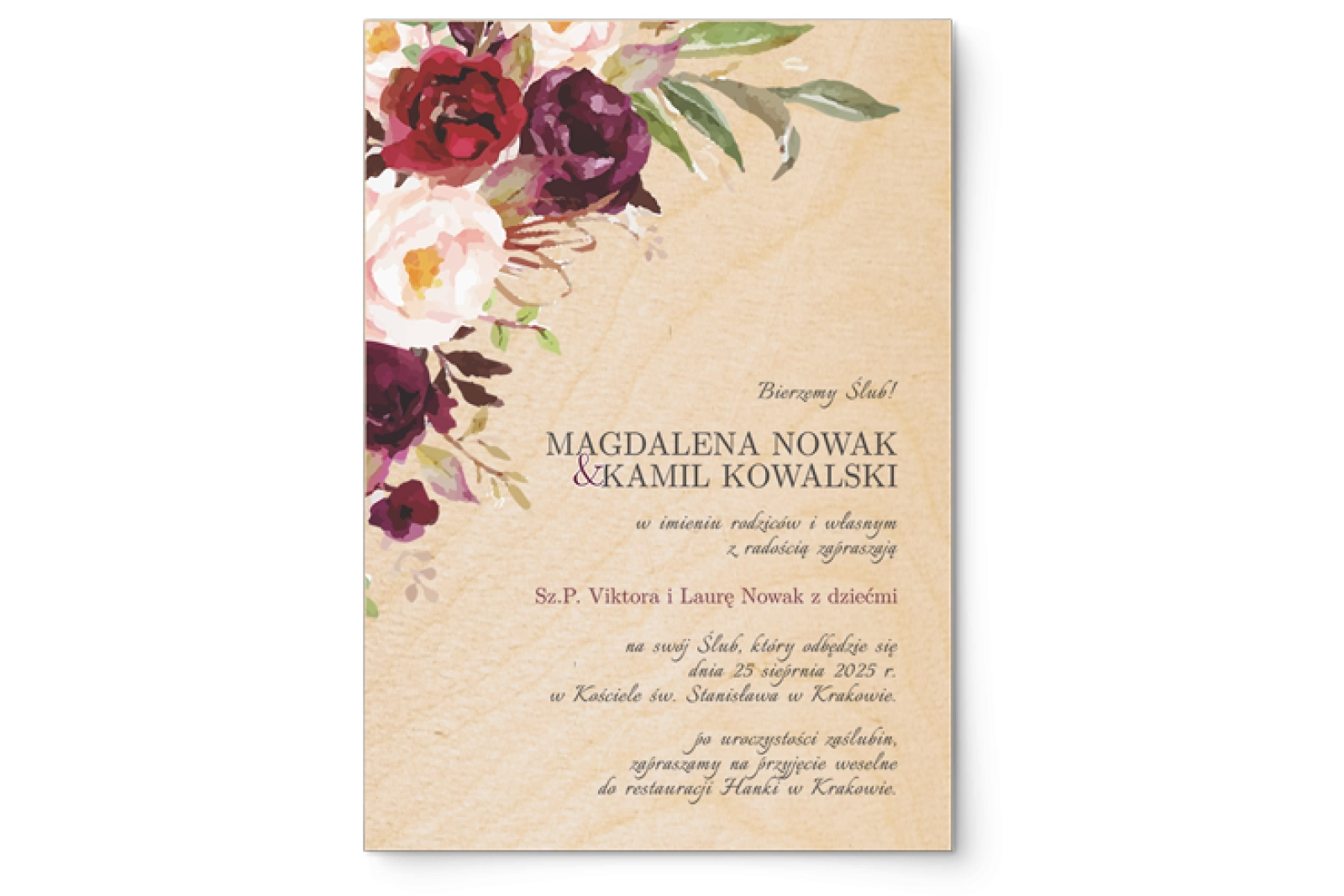 Zaproszenia ślubne Fabello - Drewniane Motyw 2
