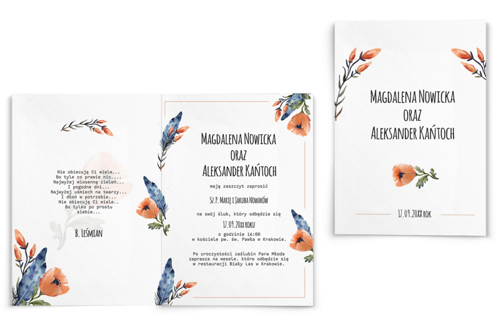 Wszystkie treści zaproszenia oraz dodatkowych wkładek są dowolnie personalizowane. Możesz zmienić każdą treść na swoim zaproszeniu. Podczas wypełniania Formularza Personalizacji opisz nam jak chcesz, aby wyglądało Twoje zaproszenie. Grafik przygotuje projekt skrojony specjalnie dla Ciebie.