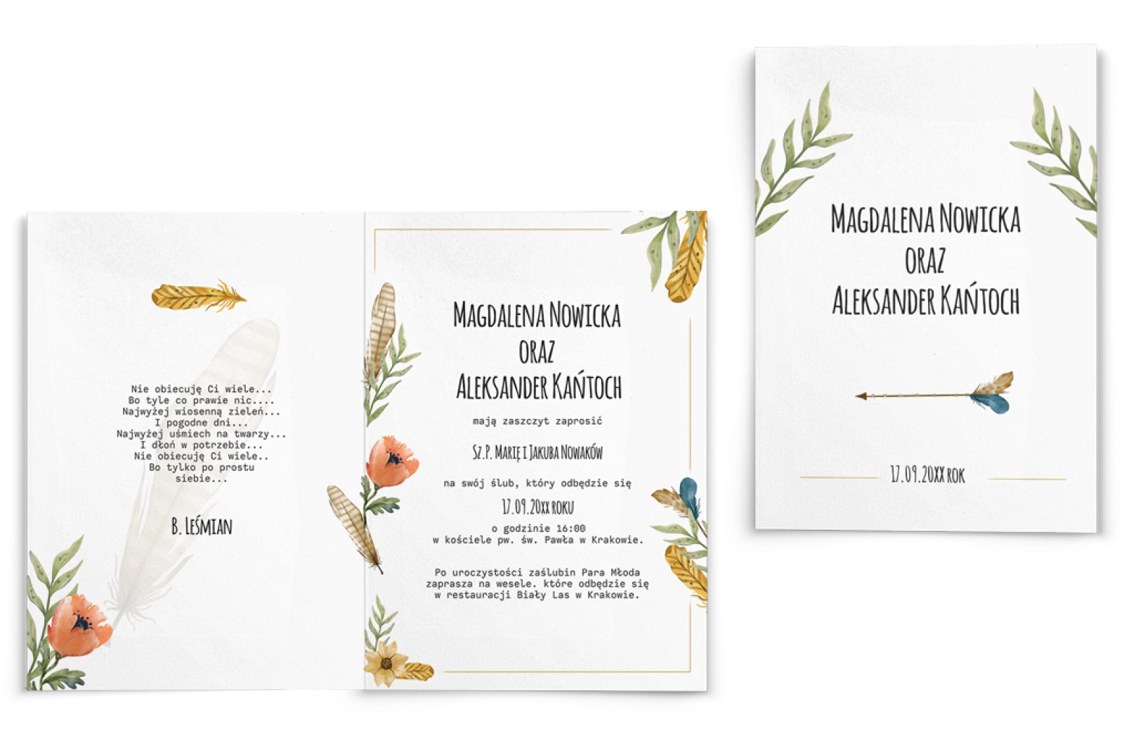 Wszystkie treści zaproszenia oraz dodatkowych wkładek są dowolnie personalizowane. Możesz zmienić każdą treść na swoim zaproszeniu. Podczas wypełniania Formularza Personalizacji opisz nam jak chcesz, aby wyglądało Twoje zaproszenie. Grafik przygotuje projekt skrojony specjalnie dla Ciebie.
