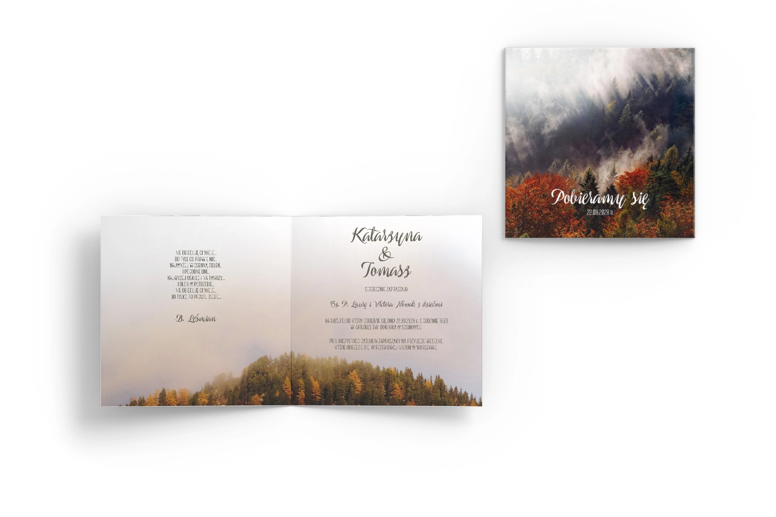 Zaproszenia ślubne Forest - Składane Kwadrat Motyw 3