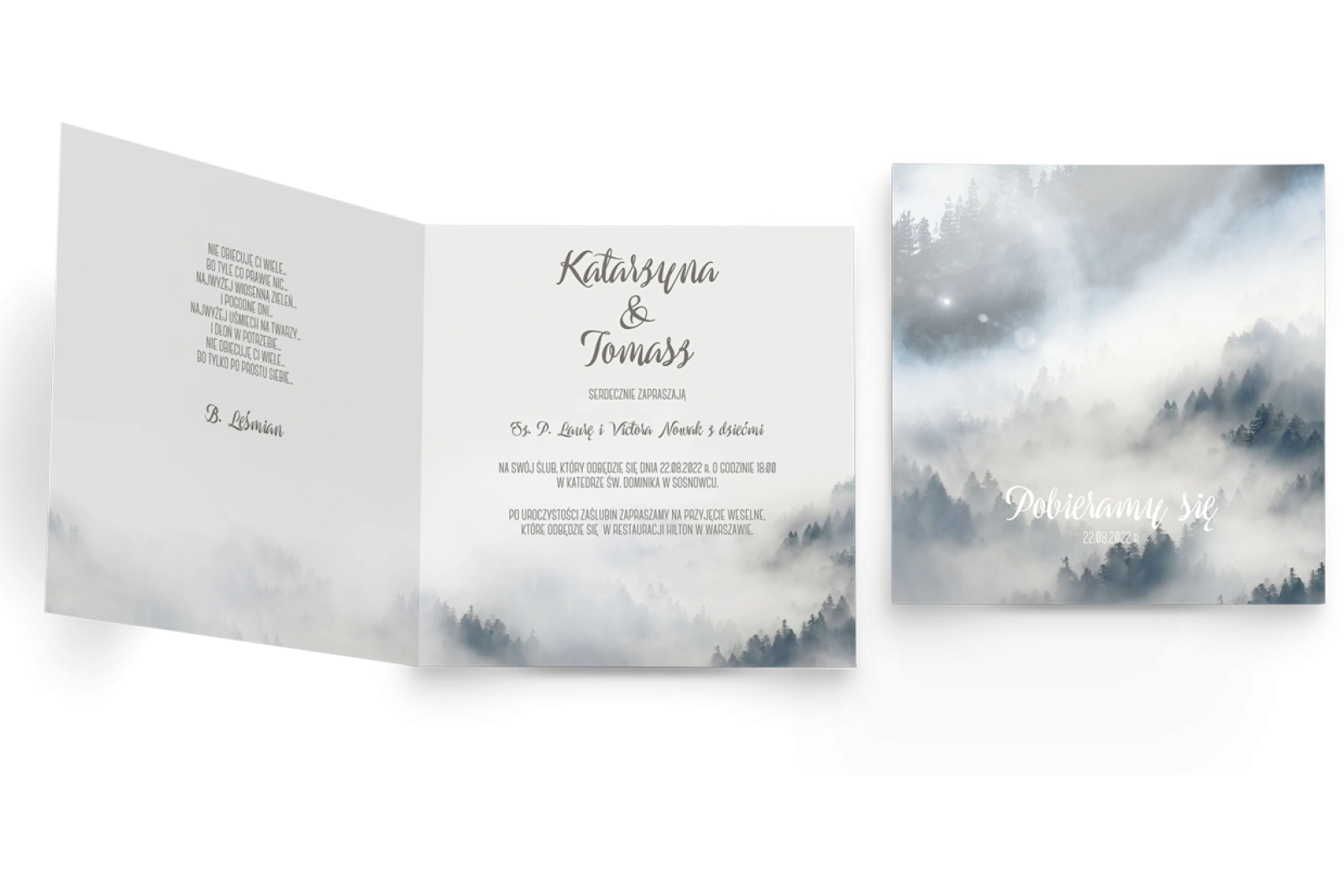 Zaproszenia ślubne Forest - Składane Kwadrat Motyw 5