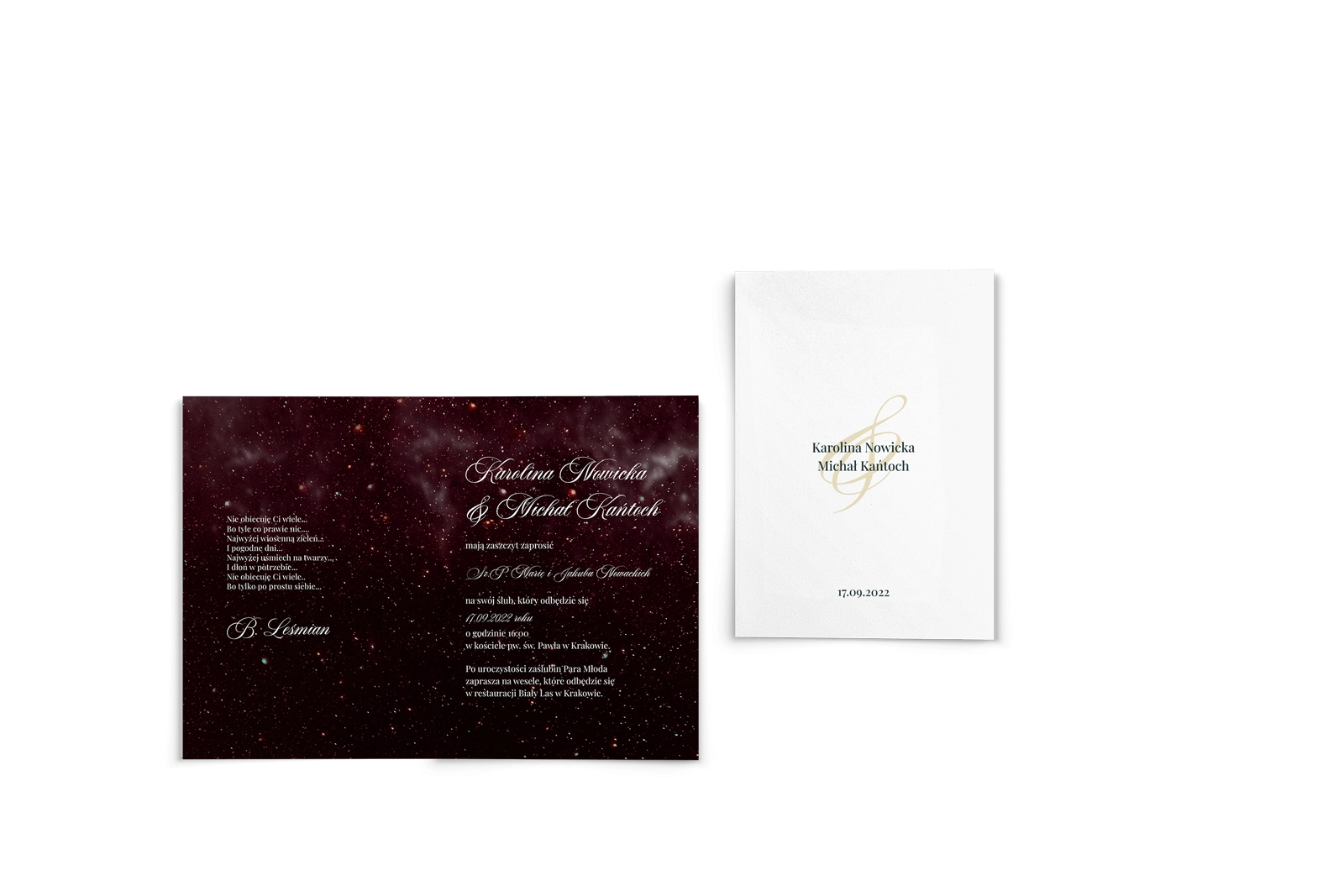 Wszystkie treści zaproszenia oraz dodatkowych wkładek są dowolnie personalizowane. Możesz zmienić każdą treść na swoim zaproszeniu. Podczas wypełniania Formularza Personalizacji opisz nam jak chcesz, aby wyglądało Twoje zaproszenie. Grafik przygotuje projekt skrojony specjalnie dla Ciebie.