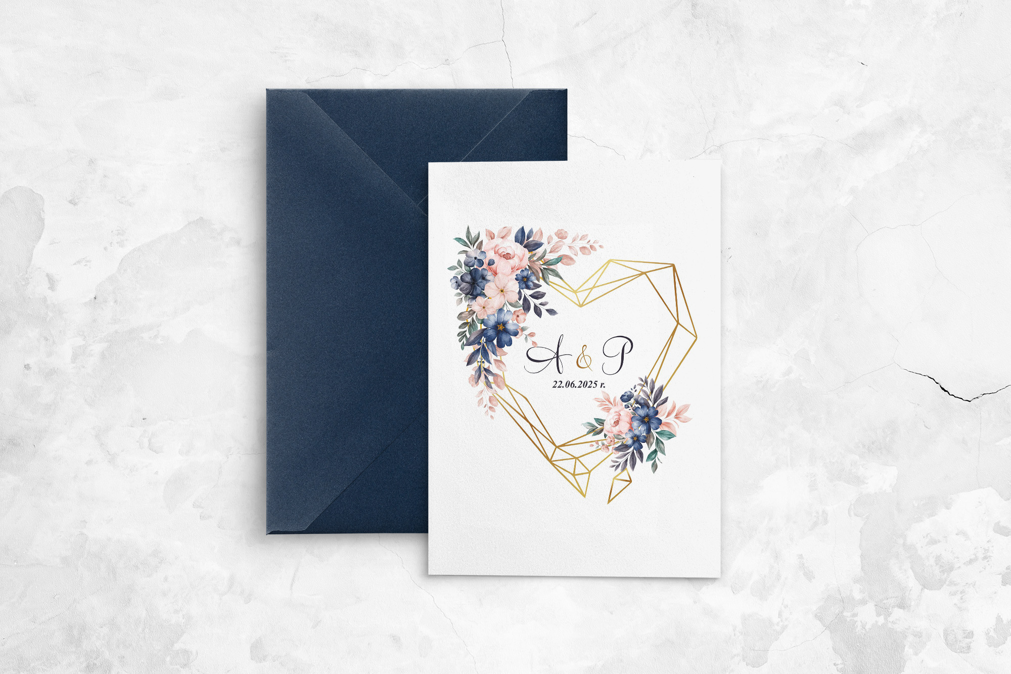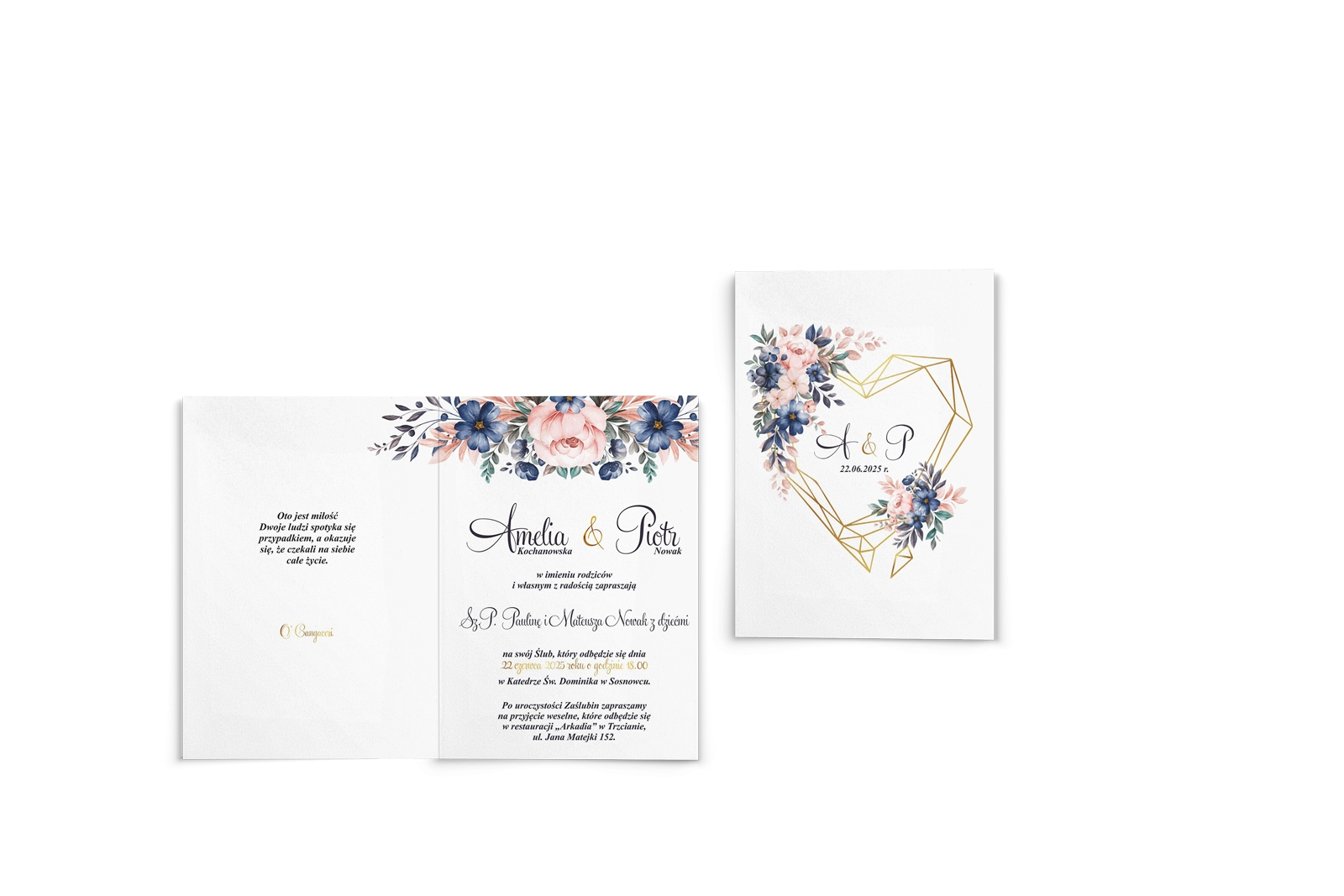 Zaproszenia ślubne Geometryczne Serce - Składane Motyw 2