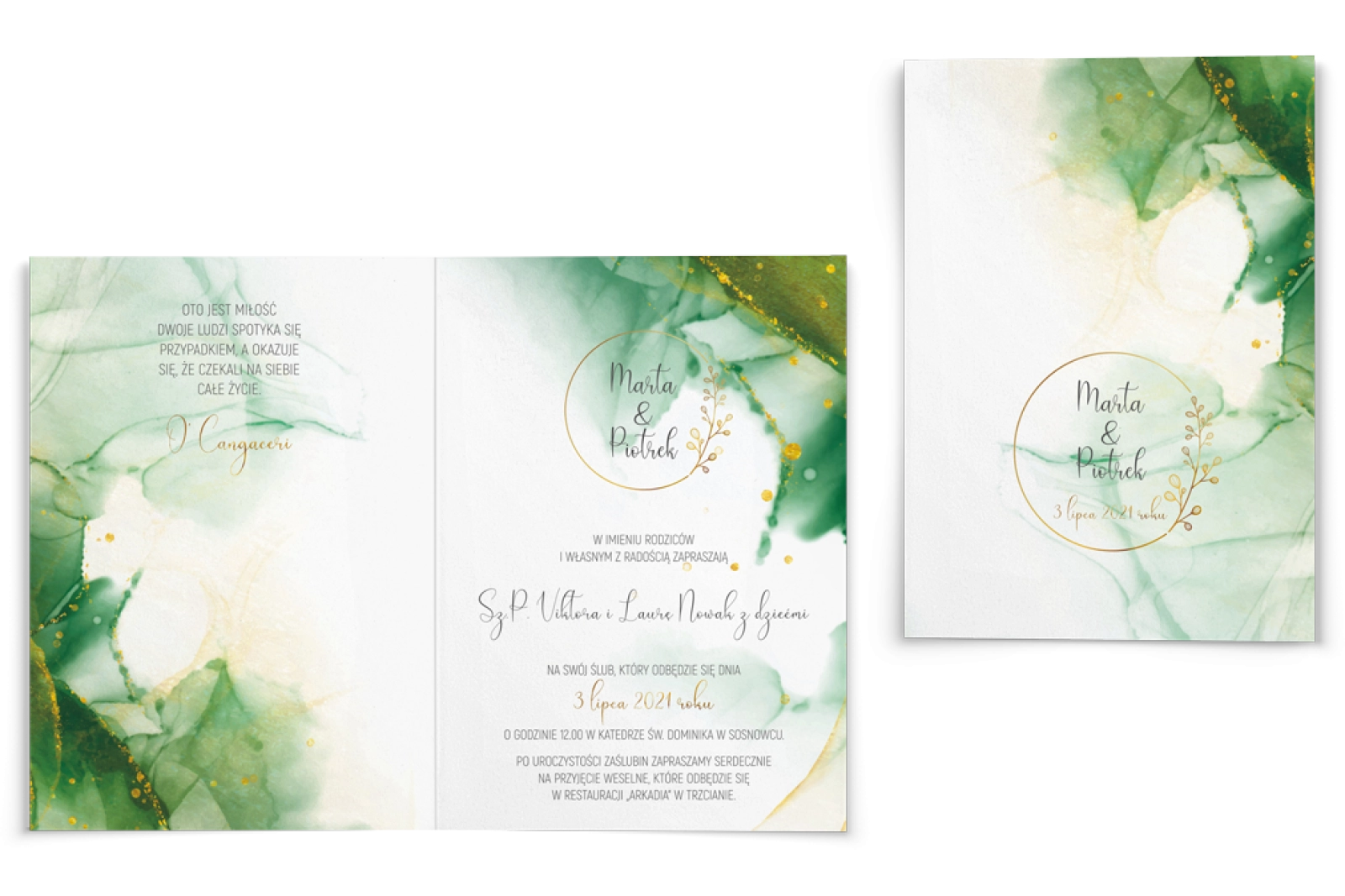 Wszystkie treści zaproszenia oraz dodatkowych wkładek są dowolnie personalizowane. Możesz zmienić każdą treść na swoim zaproszeniu. Podczas wypełniania Formularza Personalizacji opisz nam jak chcesz, aby wyglądało Twoje zaproszenie. Grafik przygotuje projekt skrojony specjalnie dla Ciebie.
