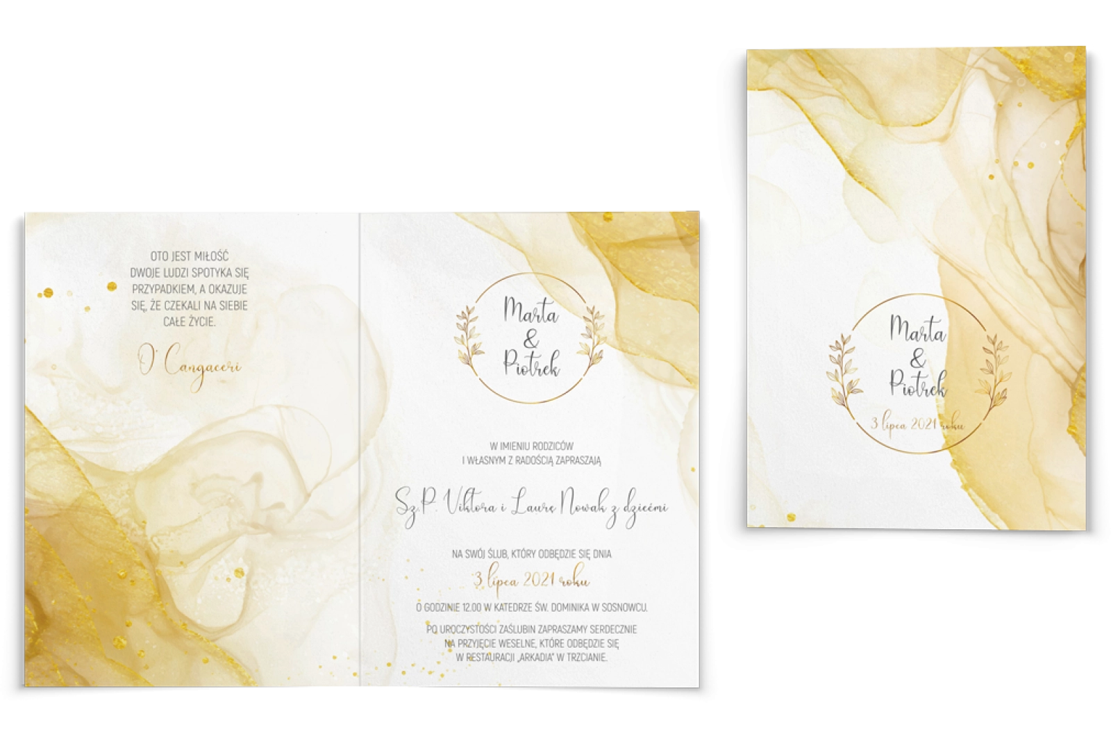 Wszystkie treści zaproszenia oraz dodatkowych wkładek są dowolnie personalizowane. Możesz zmienić każdą treść na swoim zaproszeniu. Podczas wypełniania Formularza Personalizacji opisz nam jak chcesz, aby wyglądało Twoje zaproszenie. Grafik przygotuje projekt skrojony specjalnie dla Ciebie.