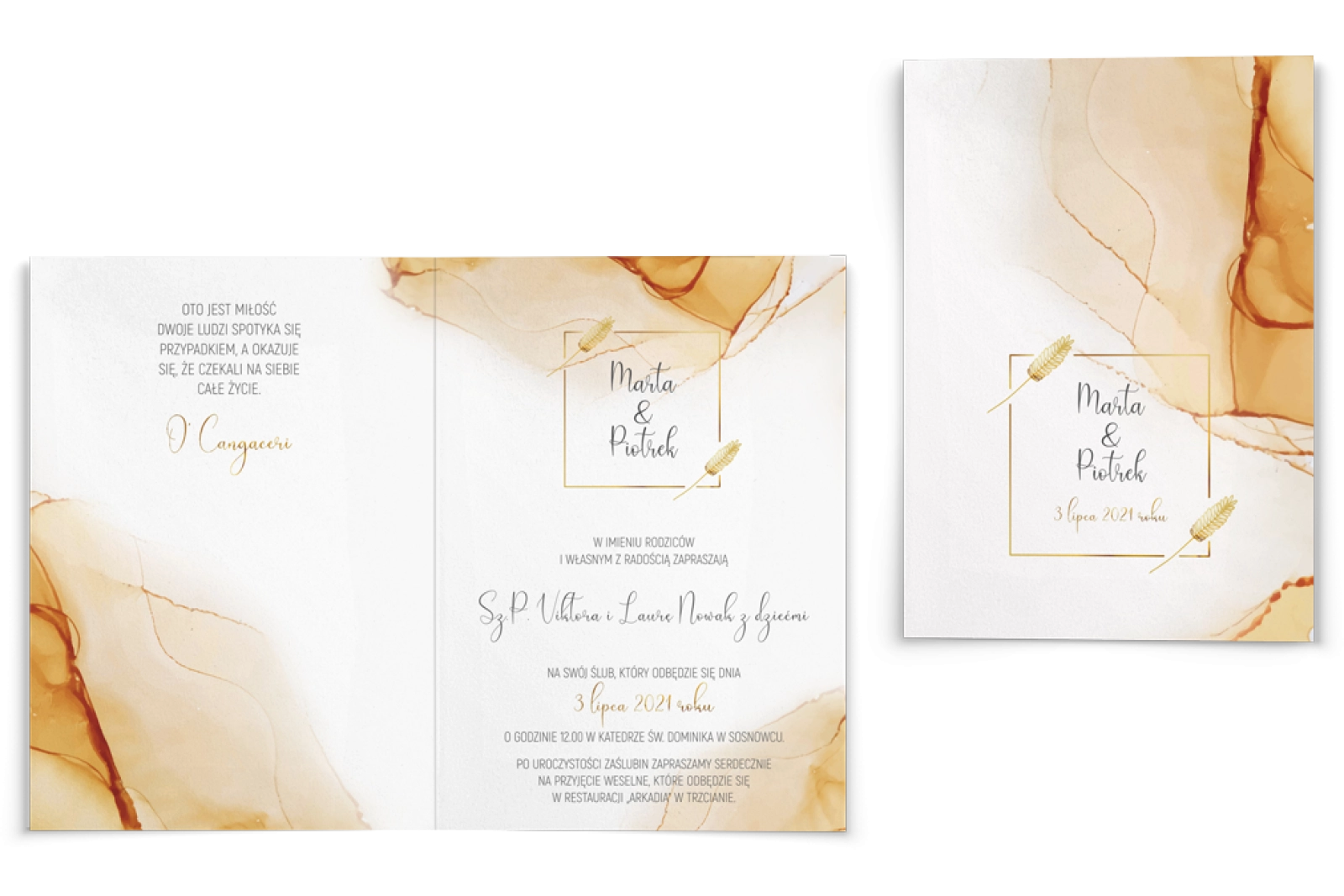 Wszystkie treści zaproszenia oraz dodatkowych wkładek są dowolnie personalizowane. Możesz zmienić każdą treść na swoim zaproszeniu. Podczas wypełniania Formularza Personalizacji opisz nam jak chcesz, aby wyglądało Twoje zaproszenie. Grafik przygotuje projekt skrojony specjalnie dla Ciebie.