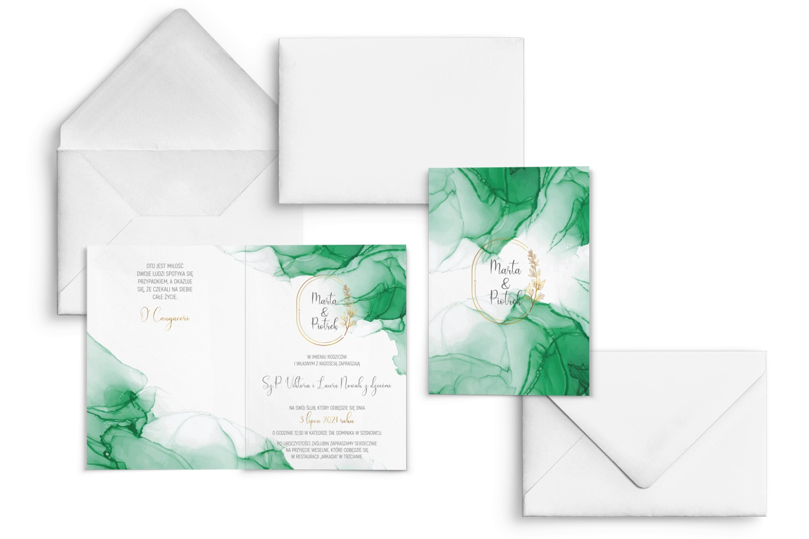 Wszystkie treści zaproszenia oraz dodatkowych wkładek są dowolnie personalizowane. Możesz zmienić każdą treść na swoim zaproszeniu. Podczas wypełniania Formularza Personalizacji opisz nam jak chcesz, aby wyglądało Twoje zaproszenie. Grafik przygotuje projekt skrojony specjalnie dla Ciebie.