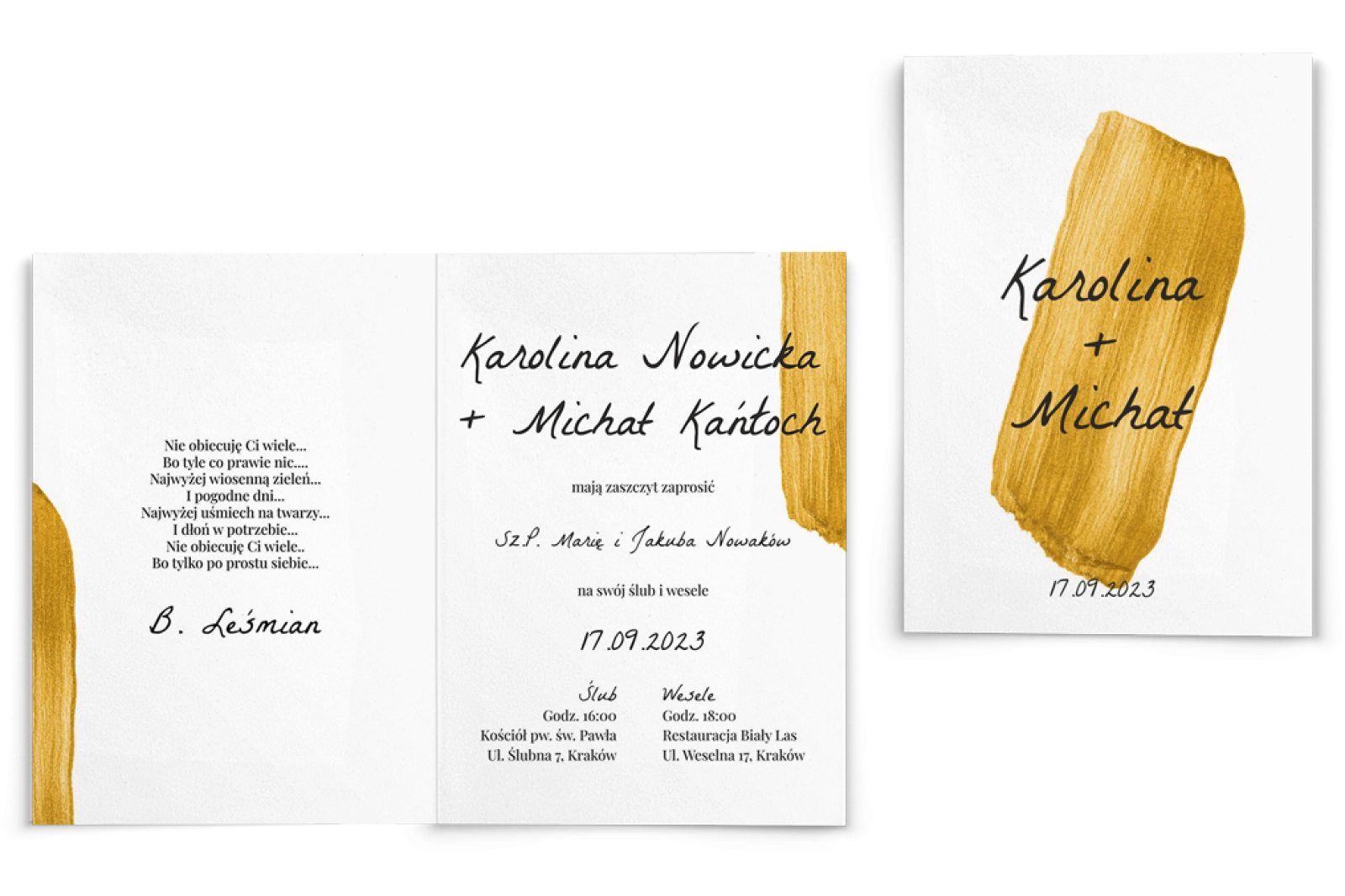 Zaproszenia ślubne Golden Brush - Składane Motyw 3