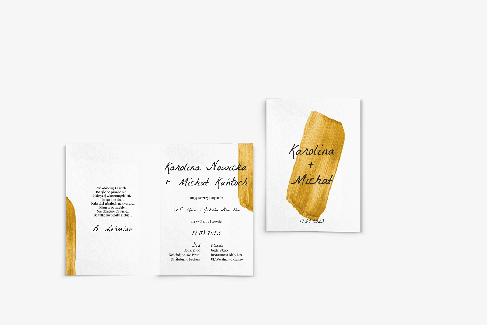 Wszystkie treści zaproszenia oraz dodatkowych wkładek są dowolnie personalizowane. Możesz zmienić każdą treść na swoim zaproszeniu. Podczas wypełniania Formularza Personalizacji opisz nam jak chcesz, aby wyglądało Twoje zaproszenie. Grafik przygotuje projekt skrojony specjalnie dla Ciebie.