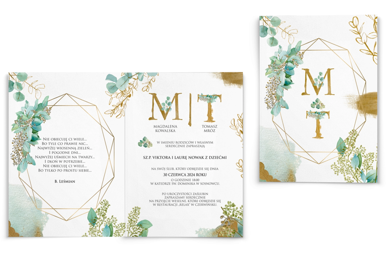 Zaproszenia ślubne Golden Green - Składane Motyw 1