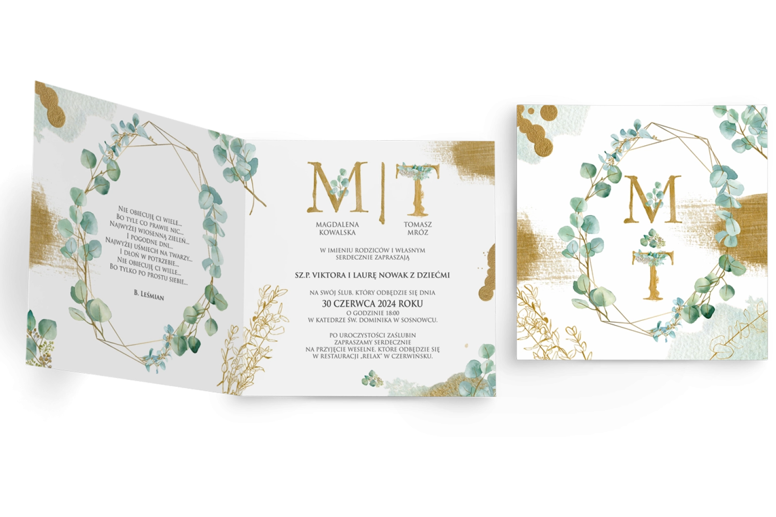 Zaproszenia ślubne Golden Green - Składane Kwadrat Motyw 2