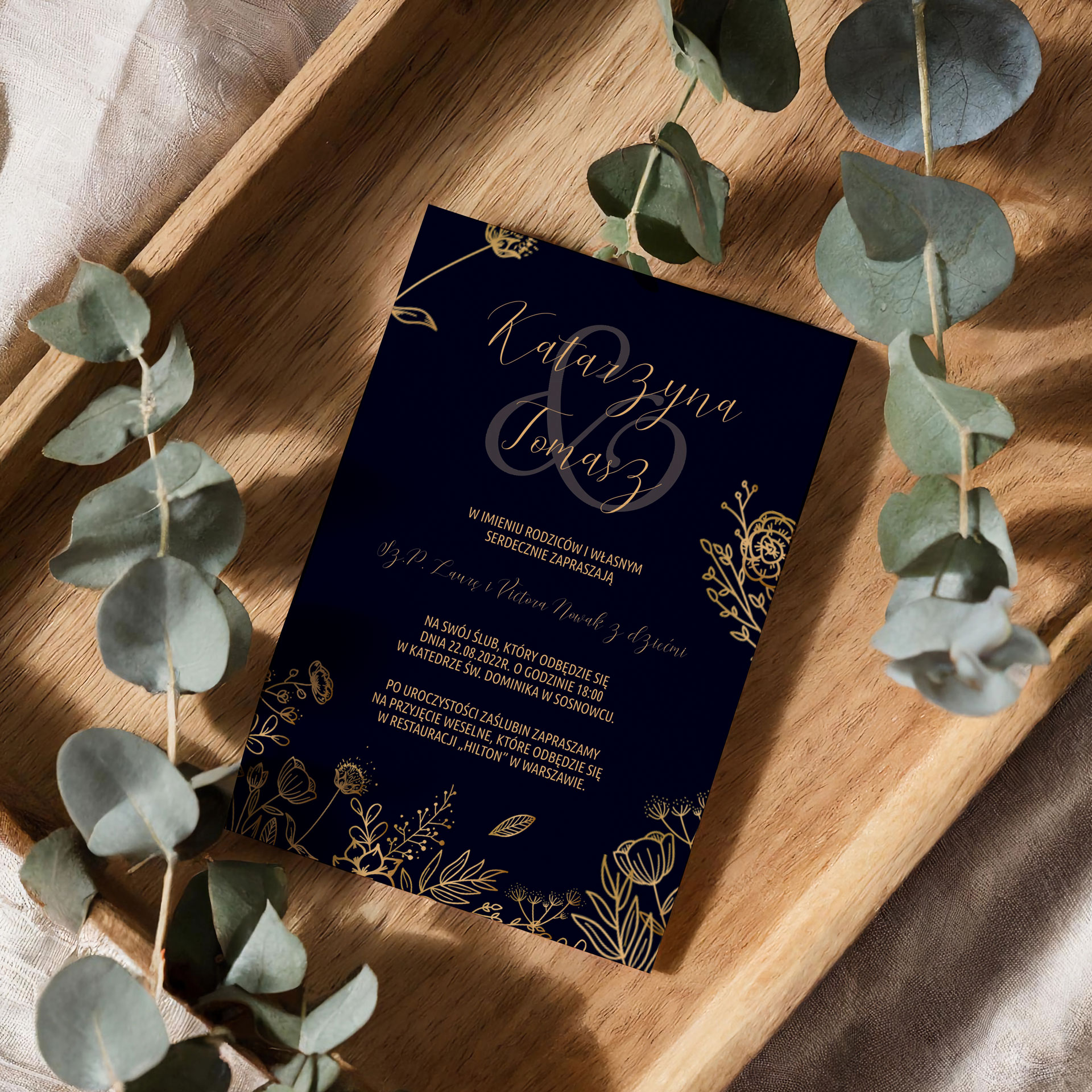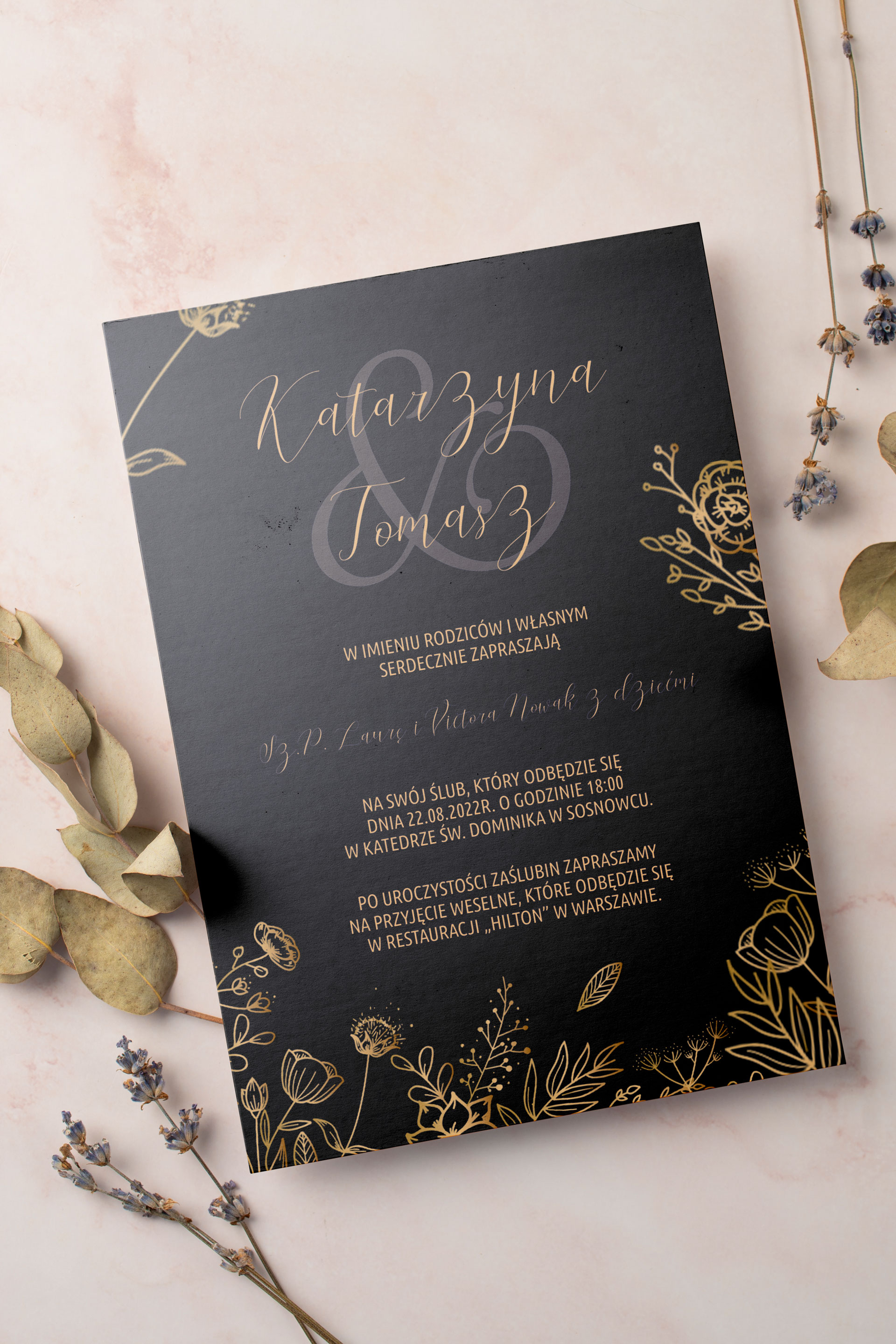 Wszystkie treści zaproszenia oraz dodatkowych wkładek są dowolnie personalizowane. Możesz zmienić każdą treść na swoim zaproszeniu. Podczas wypełniania Formularza Personalizacji opisz nam jak chcesz, aby wyglądało Twoje zaproszenie. Grafik przygotuje projekt skrojony specjalnie dla Ciebie.
