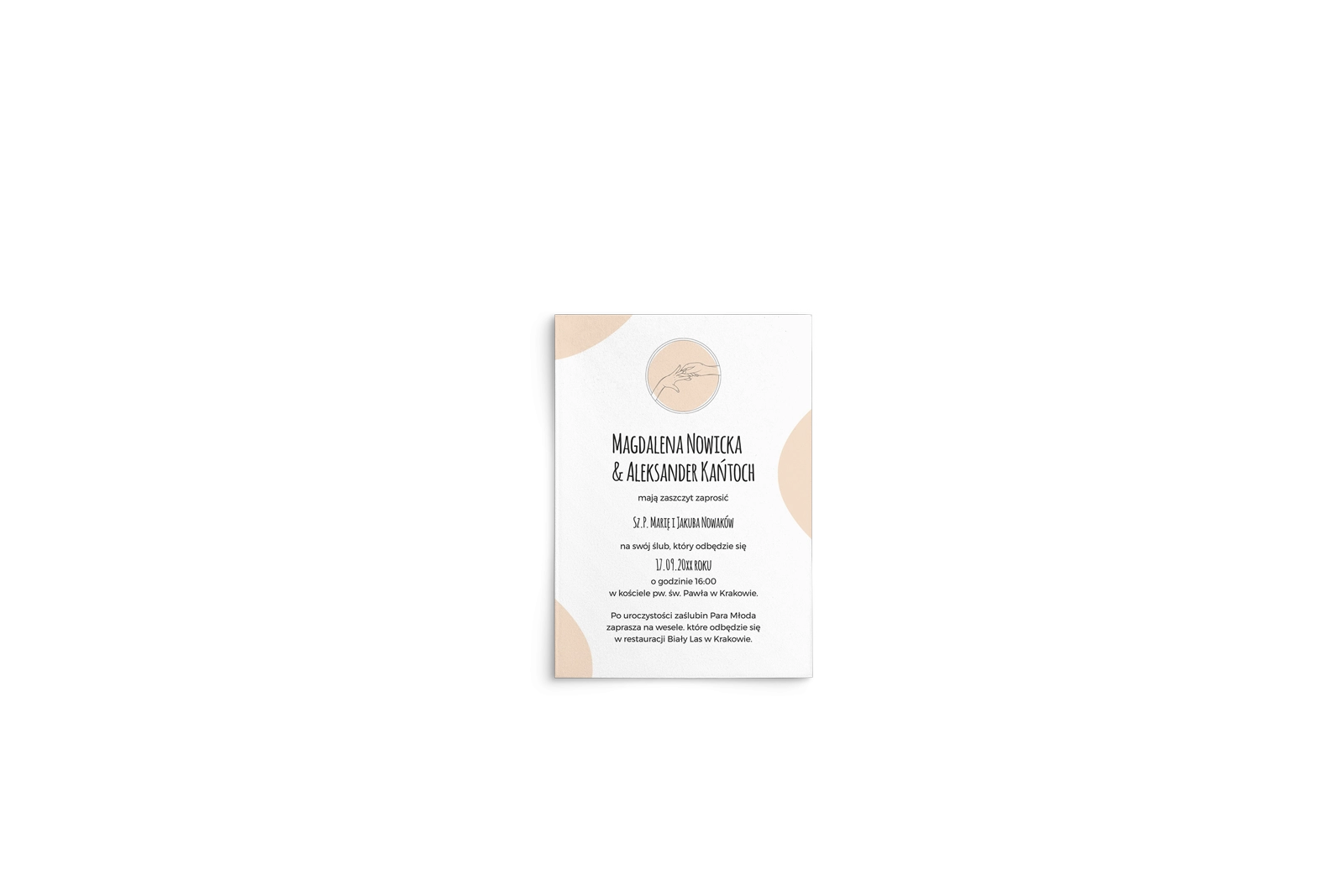 | Typ zaproszenia | Na kartach - Pionowe - Nierozkładane |