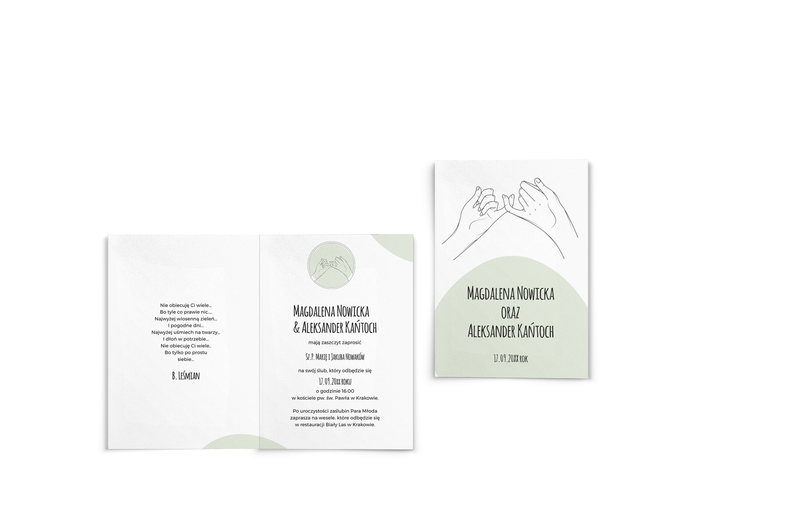 Wszystkie treści zaproszenia oraz dodatkowych wkładek są dowolnie personalizowane. Możesz zmienić każdą treść na swoim zaproszeniu. Podczas wypełniania Formularza Personalizacji opisz nam jak chcesz, aby wyglądało Twoje zaproszenie. Grafik przygotuje projekt skrojony specjalnie dla Ciebie.
