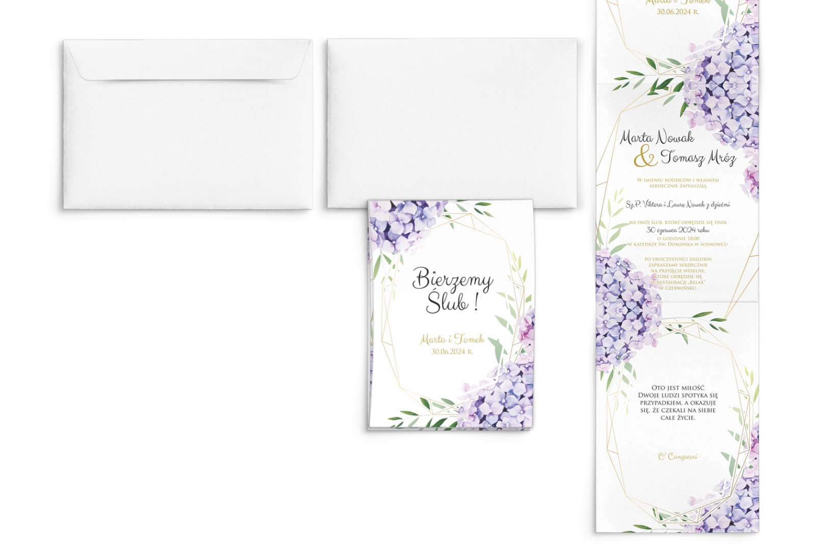 | Rozmiar zaproszenia | Rozłożone 426x100 mm (+- 2mm) |