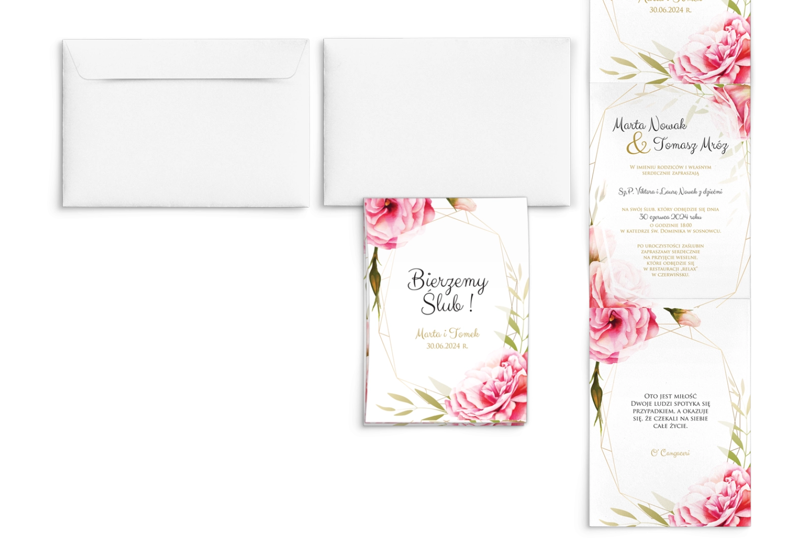 | Rozmiar zaproszenia | Rozłożone 426x100 mm (+- 2mm) |
