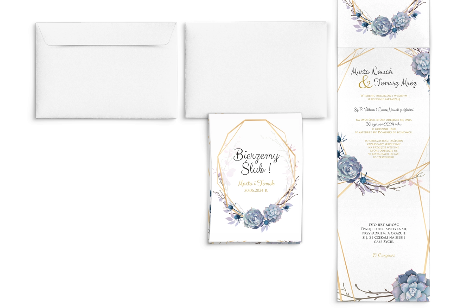 | Rozmiar zaproszenia | Rozłożone 426x100 mm (+- 2mm) |