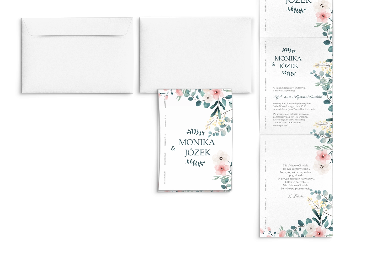 | Rozmiar zaproszenia | Rozłożone 426x100 mm (+- 2mm) |
