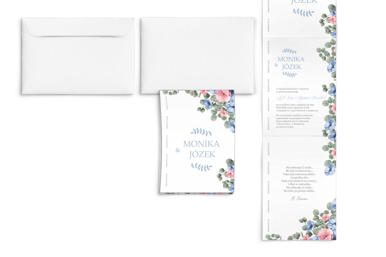 | Rozmiar zaproszenia | Rozłożone 426x100 mm (+- 2mm) |