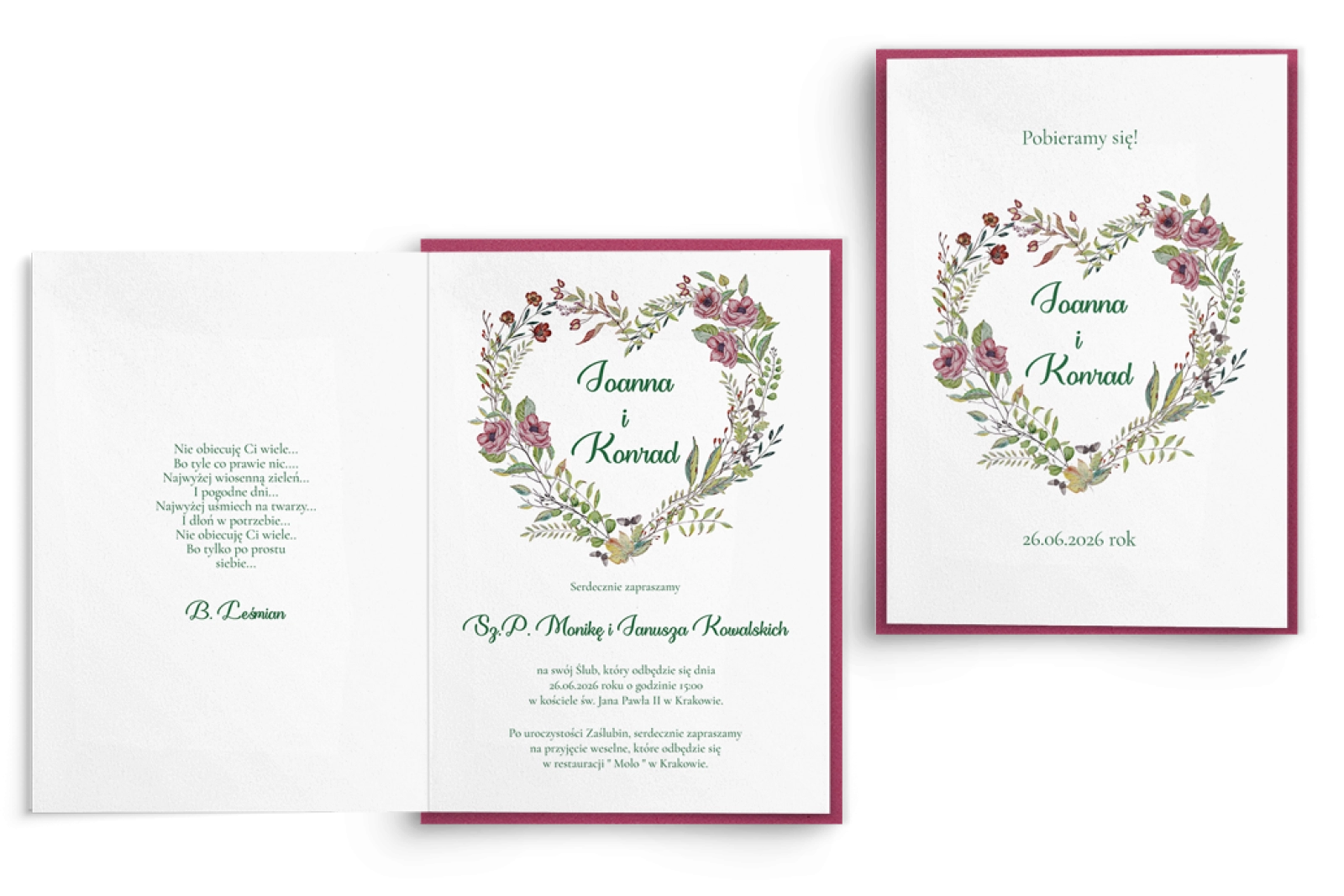 Zaproszenia ślubne Heart of Flowers - Składane motyw 3