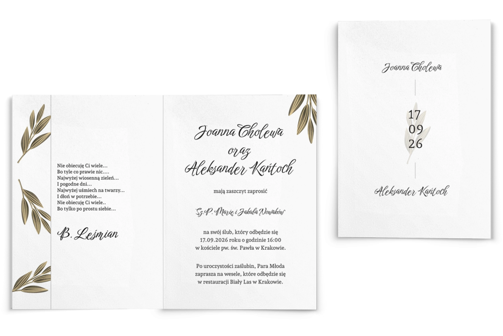 Zaproszenia ślubne Jesienne Liście - Składane motyw 2