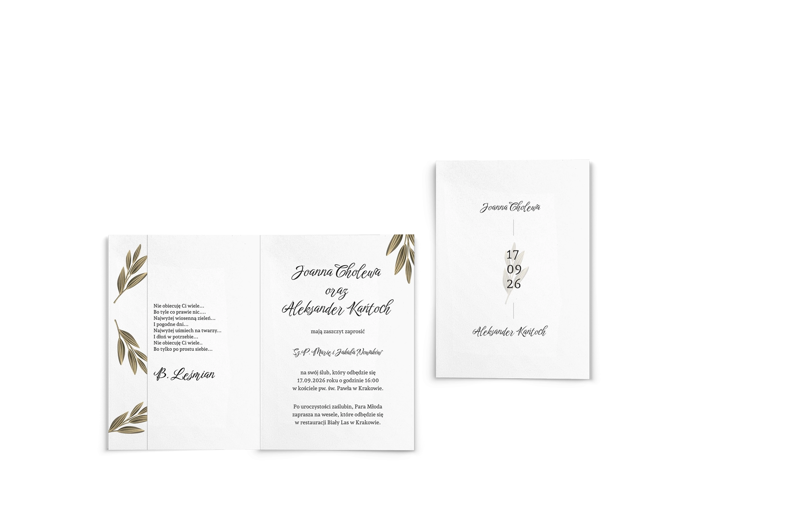 Na tej karcie produktu kupujesz Zaproszenia Ślubne Składane w konfiguracji określonej w specyfikacji. Nasze zaproszenia ślubne są drukowane na wybranym przez Ciebie papierze przy użyciu wysokiej jakości drukarki produkcyjnej, która zapewnia mocne, nasycone kolory oraz czytelny wyrazisty tekst.
