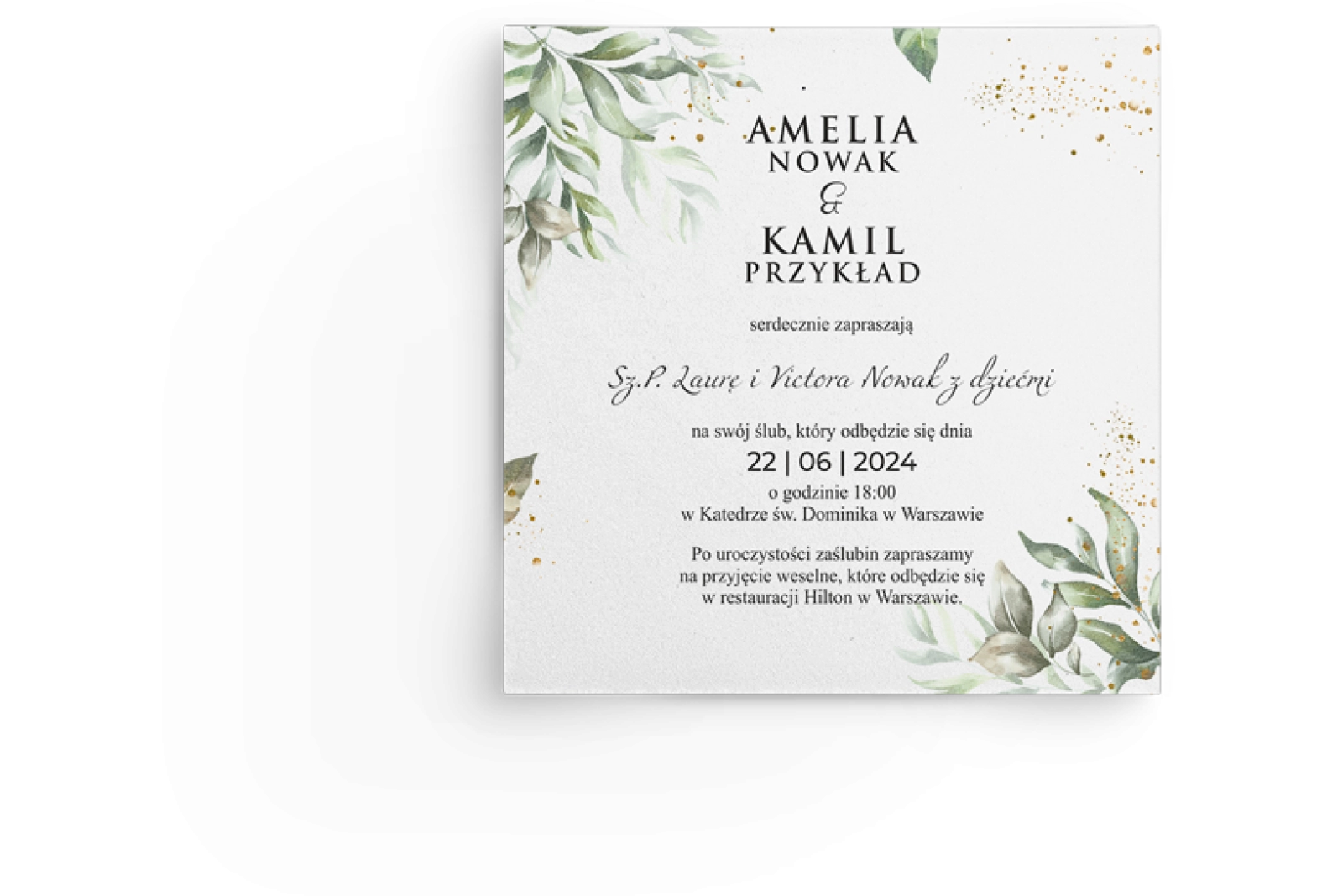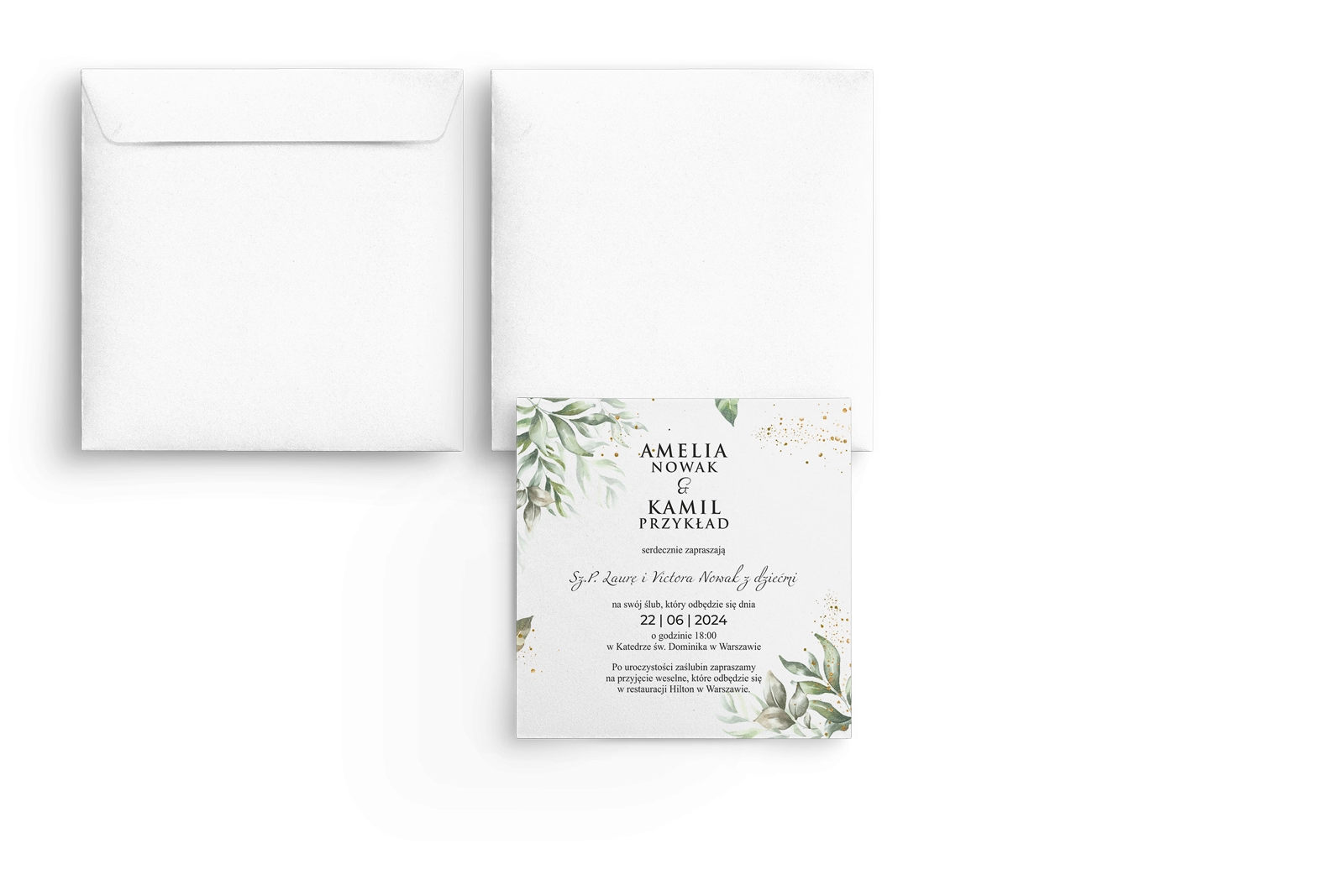 Zaproszenia ślubne Leaves - Kwadrat Motyw 1