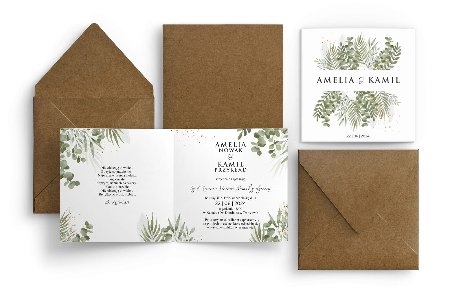 Zaproszenia ślubne Leaves - Składane Kwadrat Motyw 2