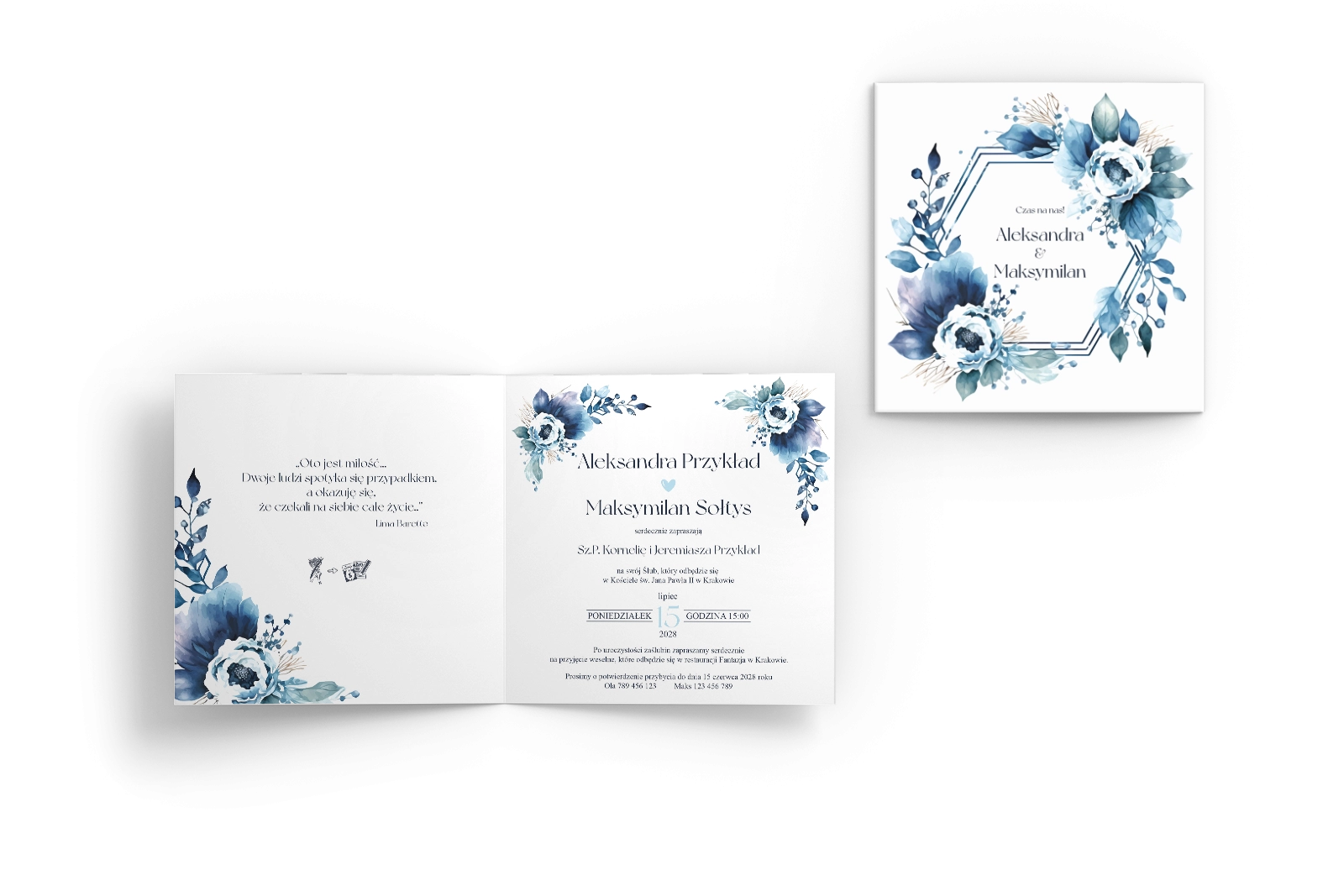 Zaproszenia ślubne Kwadratowe Składane Azure Flowers - Motyw 1