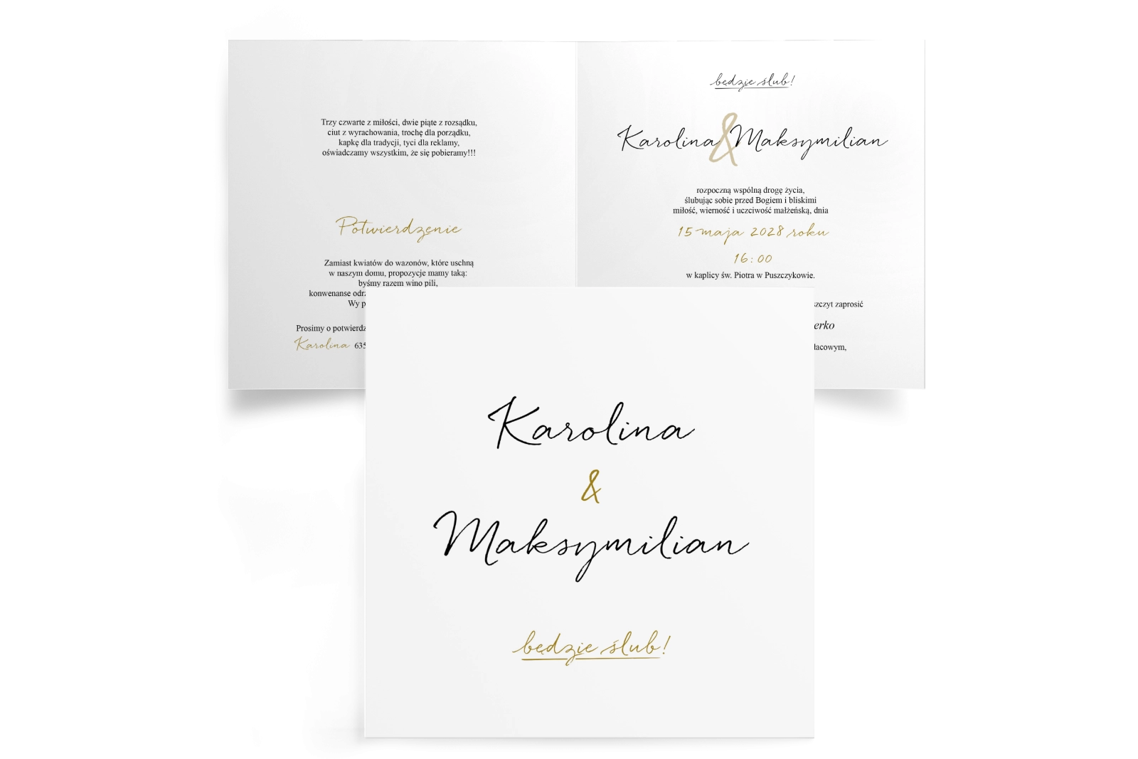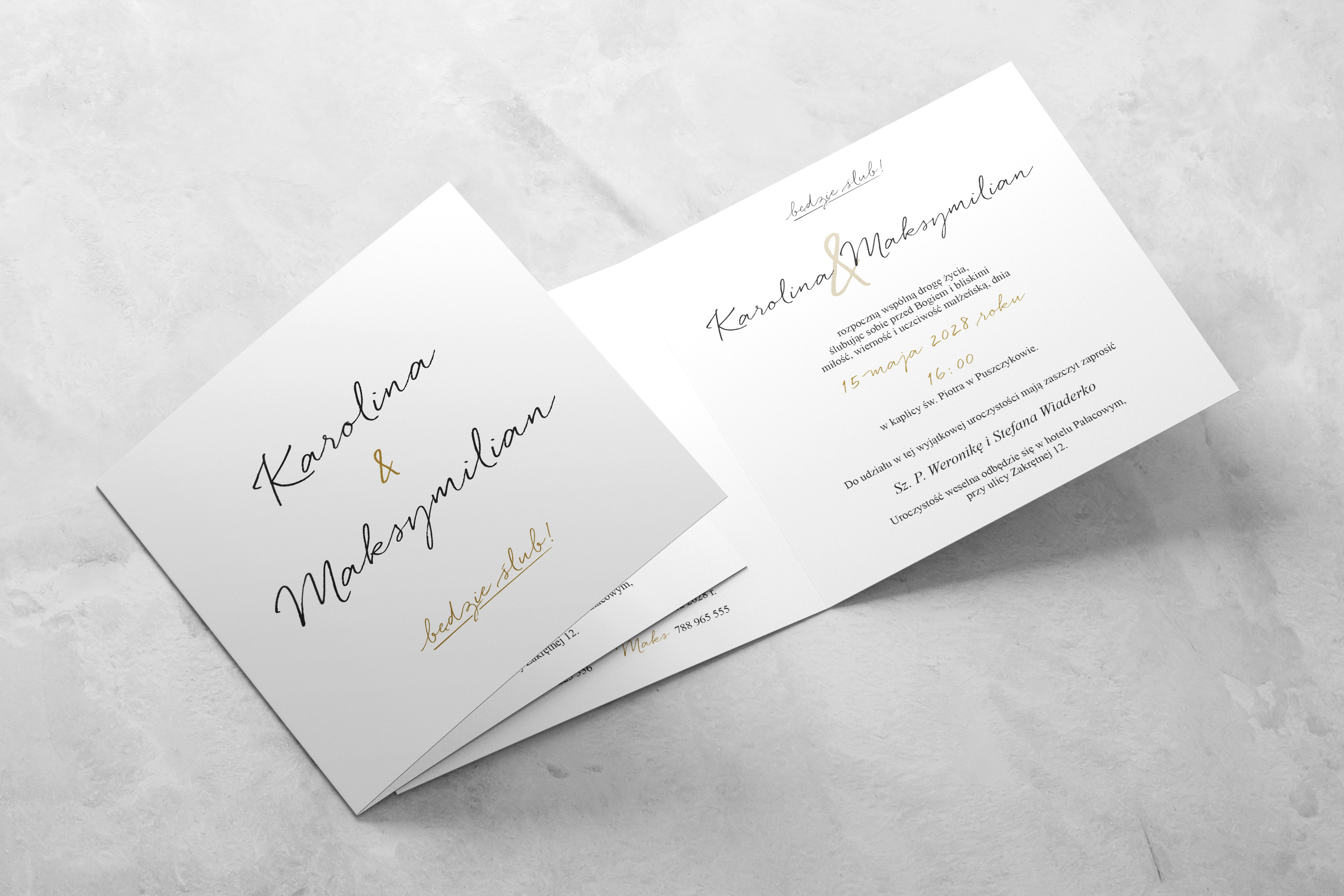 Zaproszenia ślubne Kwadratowe Składane Golden Elegance - Motyw 1