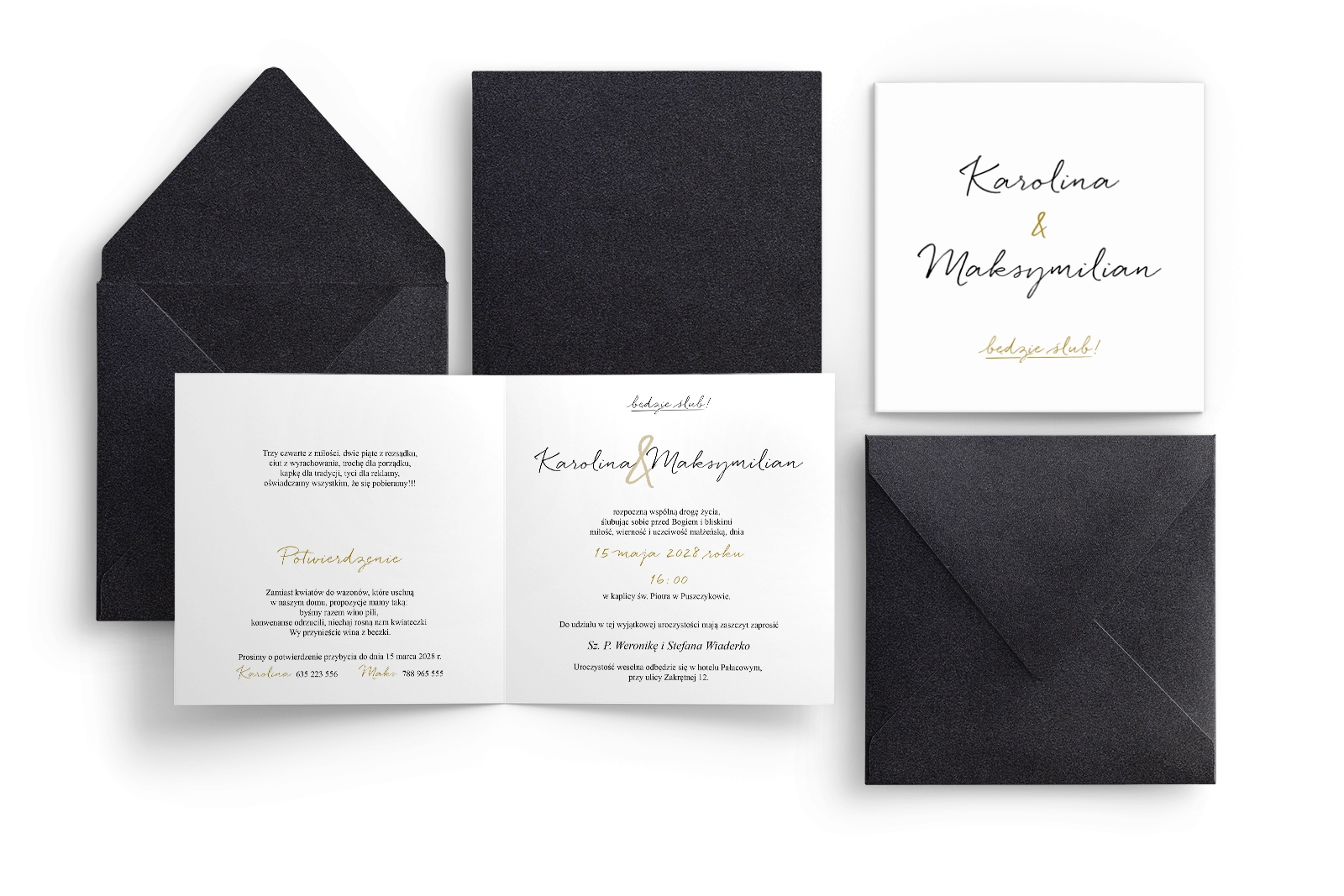 Zaproszenia ślubne Kwadratowe Składane Golden Elegance - Motyw 1
