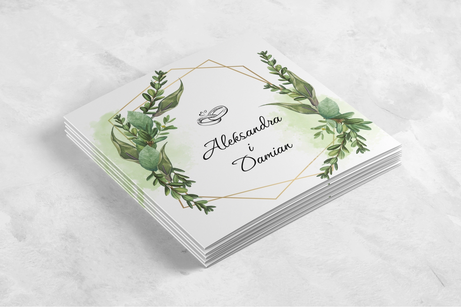 Zaproszenia ślubne Kwadratowe Składane Green and Gold - Motyw 1
