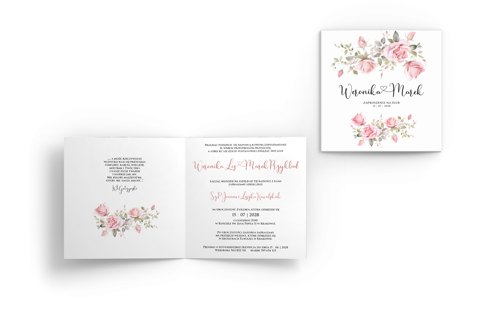 | Rozmiar zaproszenia z papierem ozdobnym | Złożone 147x147 mm (+- 2mm) |