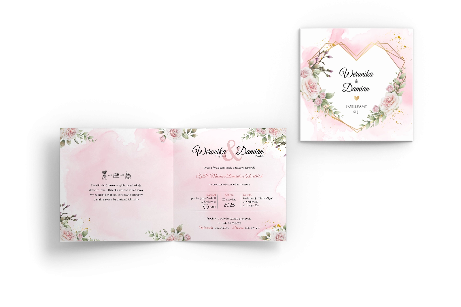 Rozmiar zaproszenia z papierem ozdobnym Złożone 147x147 mm (+- 2mm)