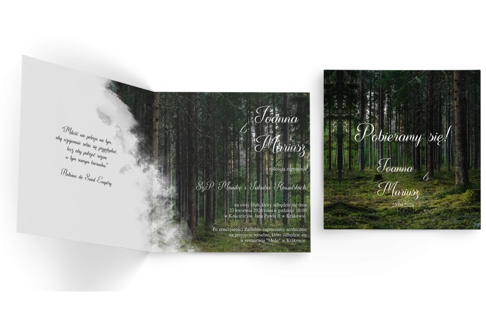 Zaproszenia ślubne Las - Składane Kwadrat Motyw 1
