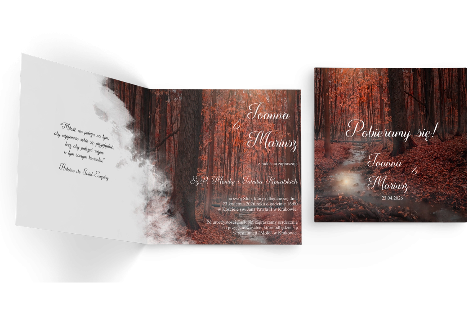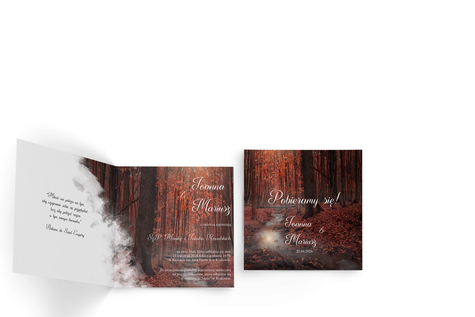 Zaproszenia ślubne Las - Składane Kwadrat Motyw 2