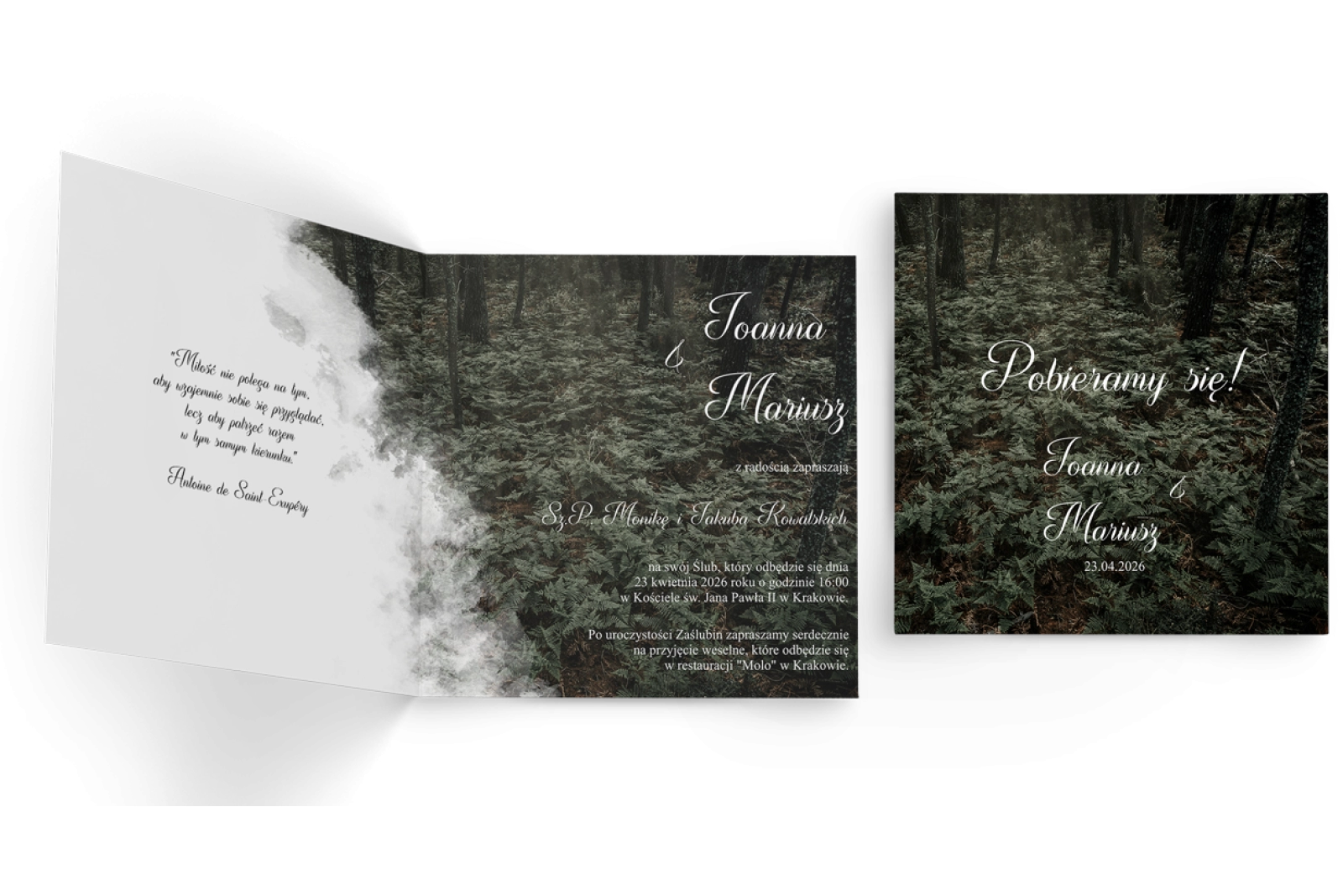 Zaproszenia ślubne Las - Składane Kwadrat Motyw 3
